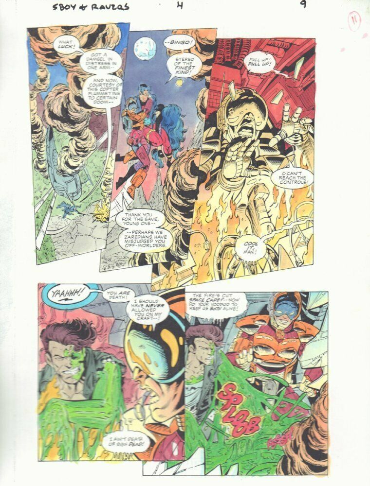 Superboy and the Ravers #4 p.9 Color Guide Art - Superboy, Aura, and Half-Life - 1996Paul Pelletier pencillerDan Davis inkerJohn Kalisz painter"This is a B&W STAT photo copy that the colorist, John Kalisz, painted over to create the published page. This is color art only, the original pencils and inks aren't on here." 9.5" x 11" with some moderate wear along the edges.This item was uploaded by Bobby.If you have any specific questions or requests, please ask us prior to ordering and we'll get back to you as soon as we can. If there are any problems with your order whatsoever, please message us before leaving feedback and we'll be happy to work with you to fix the situation!We ship worldwide, combine purchases, and charge exact shipping. The price may vary based on size, weight, and location. If you are automatically overcharged for shipping, message us and we'll be happy to revise the invoice or refund you the excess amount. If you have any questions regarding shipping, please message us.International Buyers - Please Note: Import duties, taxes, and charges are not included in the item price or shipping cost. These charges are the buyer's responsibility. Please check with your country's customs office to determine what these additional costs will be prior to bidding or buying. Payment can be made by PayPal and credit cards directly. 120,000+ items in total in my Hip store! Frequently Asked Questions: When are your operation hours?Our in office hours are Monday - Friday, 11 am - 8 pm. We are not open on weekends, so if you send us a request on Friday evening we won't get back to you until Monday afternoon. Please don't take it as us ignoring you! We will work on your request Monday and get back to you as soon as we can. Also, if you order from us on a Friday evening or Saturday morning we won't start processing your order until we open on Monday. That means on Monday it will be pulled and prepped for shipping, then picked up by the postman on Tuesday morning.When will you ship my item? The tracking hasn't moved.We realize you're eager to get your item, so if the tracking hasn't moved in a few days please don't be concerned. We give the postman a lot of packages daily, sometimes as many as 100, so he does not scan each item for us upon pickup as he says it would be too time consuming for him to do so. If you get a tracking number from us, that almost always means your item was picked up by the postman the next business day. The USPS is also imperfect. There are times when the tracking won't even show movement until it's in your area's regional distribution center. This is normal in our experience. Is this original artwork? Yes! I am a professional comic book art dealer with 20+ years experience. The image pictured is one of a kind original artwork unless otherwise described. Can you issue a COA? We can, upon request. Please make sure you leave us a note while checking out and shoot us a message immediately after requesting one, just to be sure. What is your base shipping for art? $10 for Domestic, International varies depending on location. Please use Hip's shipping calculator for specifics. How do you ship comics?We ship in rigid cardboard mailers to protect your comic book from the worst the mail system has to offer. Price varies based on the number of books you purchase, but we try to keep costs as low as we can and charge exact shipping. If it looks unusually high to you please send us a message and we'll be happy to double check for you. What is your base shipping for CGC comics? Domestic for CGCs are $10 for the first and $5 for each additional one you add. Do you combine shipping? Yes, of like items. Such as: several comics can fit in one cardboard mailer, as can more than one record. Multiple art pages can easily be combined because they are light and thin. Where combined shipping differs is with size and weight. For instance, two statues require a much bigger box. Same goes for CGCs, as the package gets bigger and heavier as you go. Do you ship well? I've had some bad experiences... You needn't worry; we are professionals who value your business and want your item to arrive safely as much as you do. I have been collecting for over 30 years. I send out items the way I would like to receive them. The tracking says my item is "OUT FOR DELIVERY" in New Jersey. Why is that?If the tracking indicates that the item is "OUT FOR DELIVERY" in NJ don't worry, it's just what the tracking says when it's carried over from the postman to the sorting center. This is normal for our Post Office and will not impact you receiving your item in a timely matter.Have these CGCs had any previous owners? No. I have personally sent in almost all of these to CGC and had them returned to me, offering them fresh to the market for the 1st time. I changed my mind after successfully winning the auction or fixed price listing, will you cancel the transaction? Please only bid or hit BUY IT NOW if you are willing to follow through and pay for the item, we will not cancel the transaction. As a seller, Hip penalizes us every time we cancel an order, so it is detrimental to our business to do so. Therefore if you will not pay, then you'll have to let Hip cycle this to an "unpaid item" and accept whatever action Hip deems necessary. 120,000+ items in total in my Hip store! MEET OUR STAFF: Pictured left to right, my employees: Bobby, Justin, Mario V., Connelly, Mario B., Alejandro, Sumie, and Anthony.AS SEEN ON TV : I have been buying and selling artwork and comics for about 20 years. If you are new to buying art or comics feel free to ask any questions that you may have. 120,000+ items in total in my Hip store! Small, Regular, and Large Portfolios available; see my Hip store!