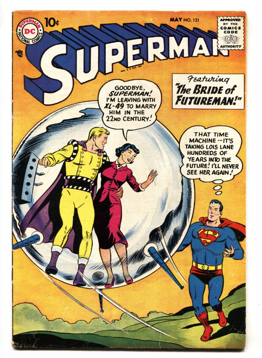 Superman Issue: 121 / Year: 1958 Condition: VG+-Bride of Futureman Publisher: DCSku: LI-93-081 Over 100,000 mail orders processed! Buy with confidence.