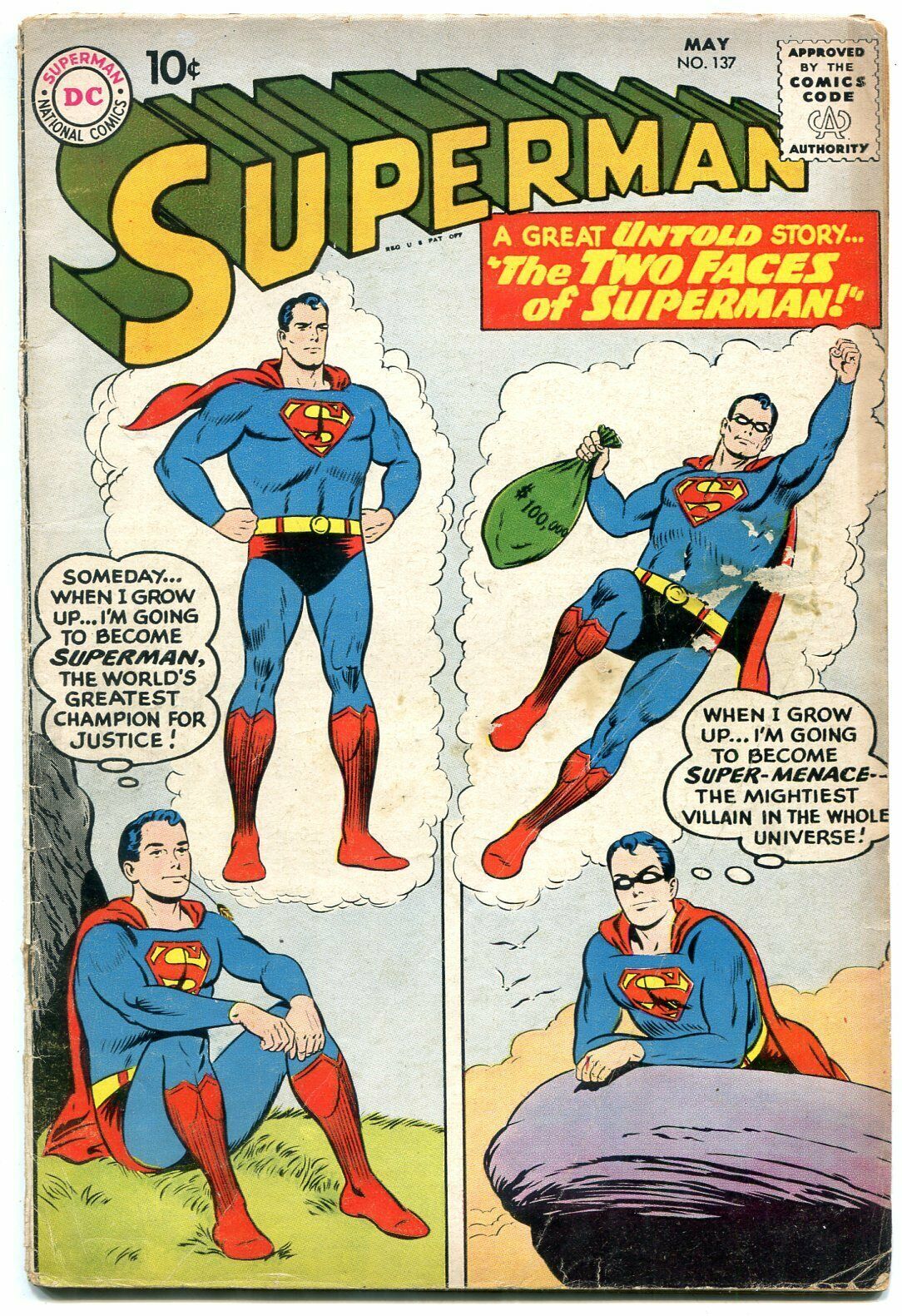 SUPERMAN-#137-TWO FACES OF SUPERMAN-SUPERBOY ON COVER VG