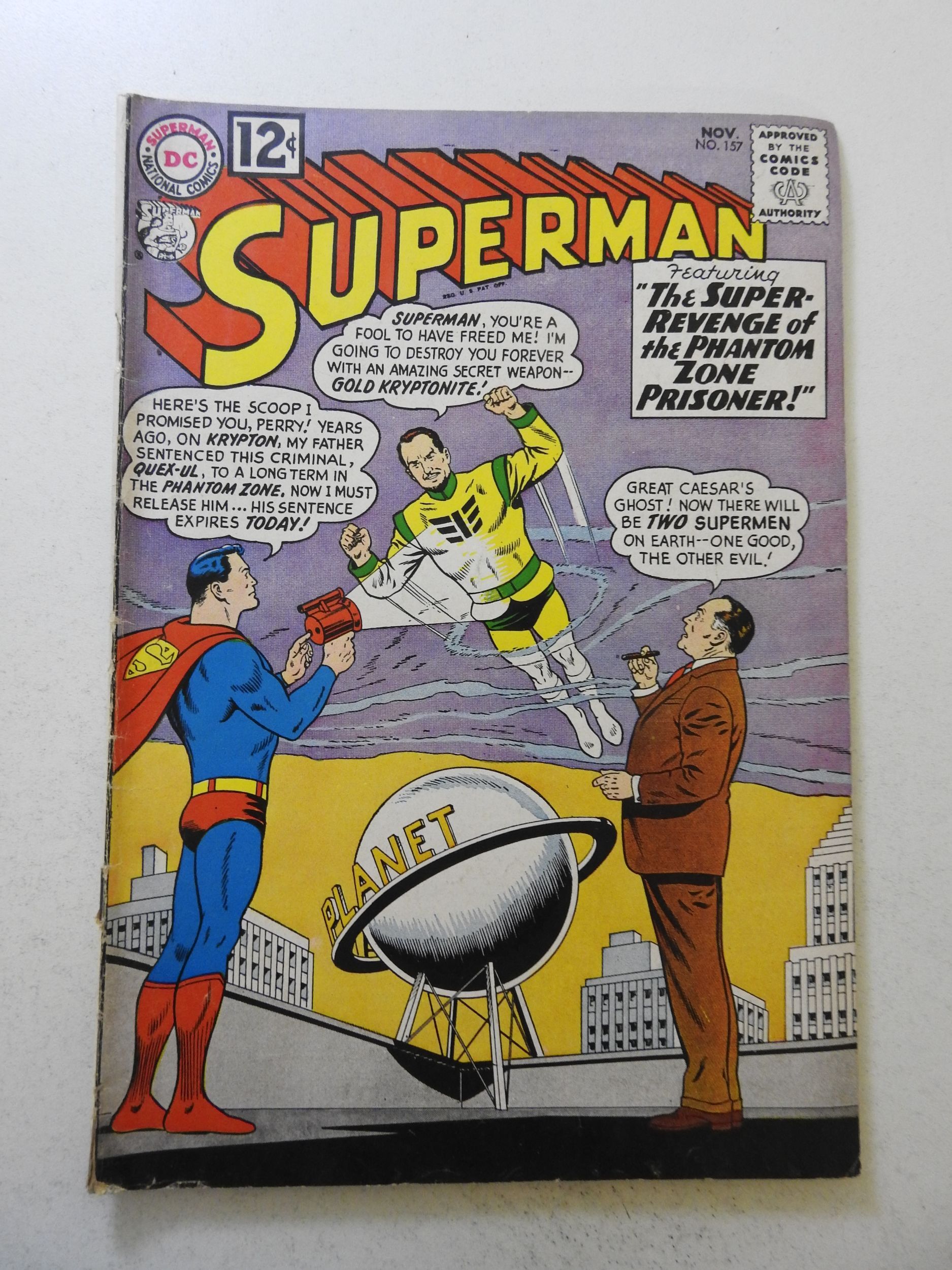 Superman #157 (1962) VG Condition moisture stains, 1/2 in spine split