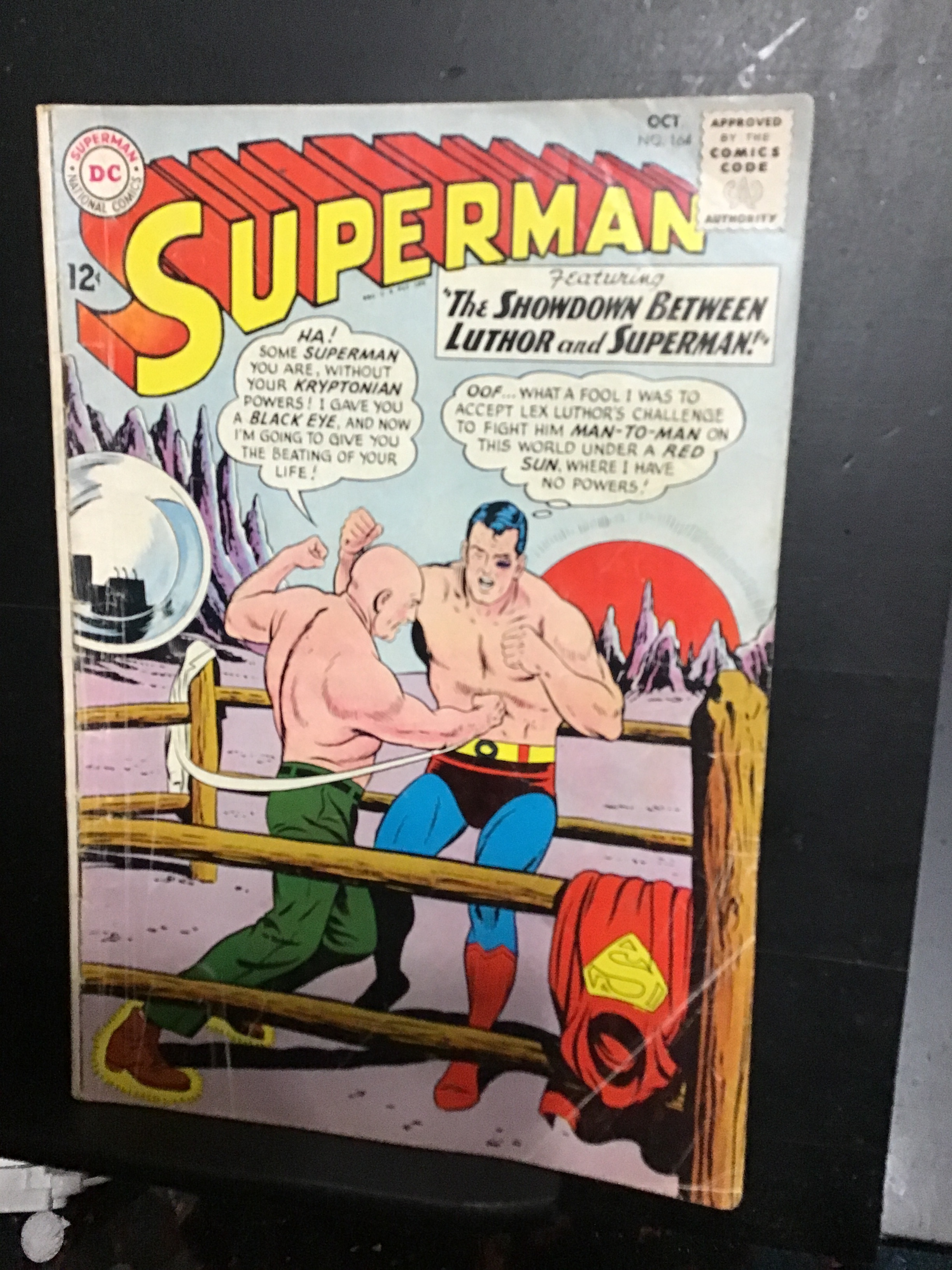 Superman #164 (1963) Luther beats up Superman! VG+ Red sun!