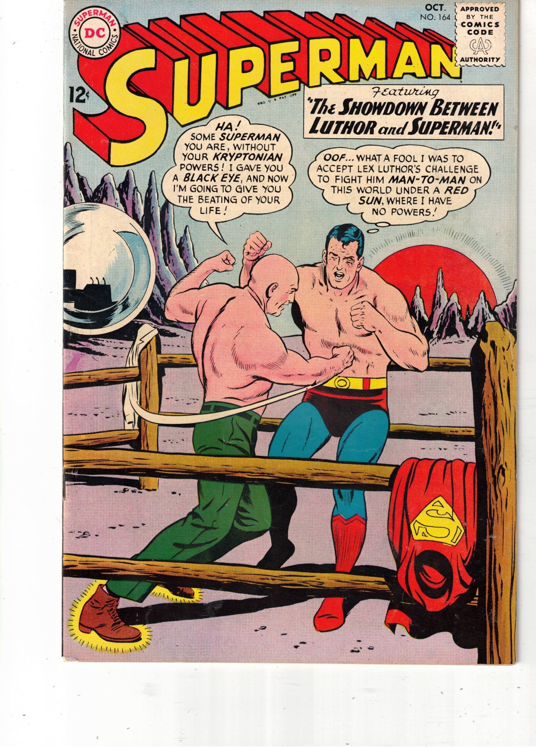 Superman #164 (1963) VF/NM Red Sun Normal Supes vs. Lex Luthor! Boca CERTIFICATE