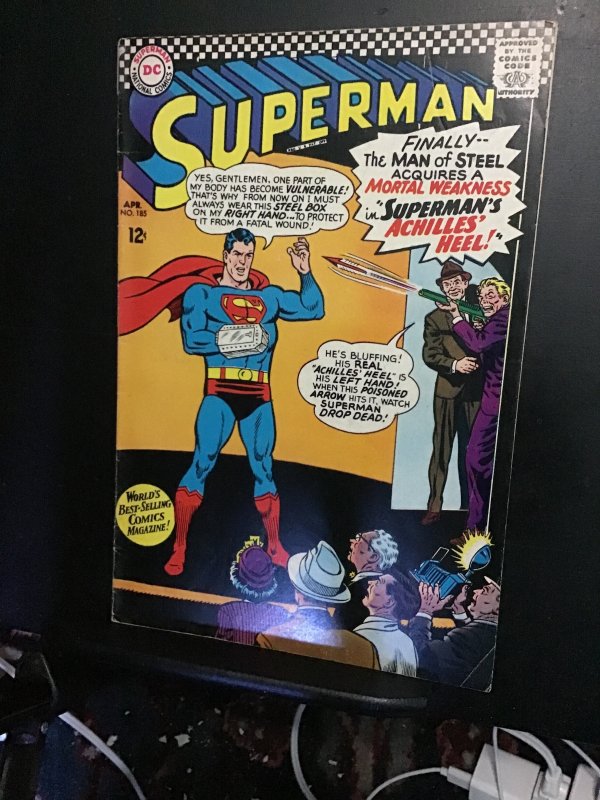 Superman #185 (1966) mid grade Achilles’ heel! First Boss Groon VG/FN Wow!