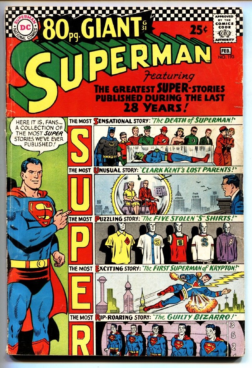 Superman Issue: 193 / YEAR: 1967 Condition: VG Giant issue. Batman, Flash Green Lantern, Wonder Woman, Aquaman - 80 page giant. Publisher: DC SKU: U2-97-155 Sale & Auction Terms and Shipping & Handling A ... Read More