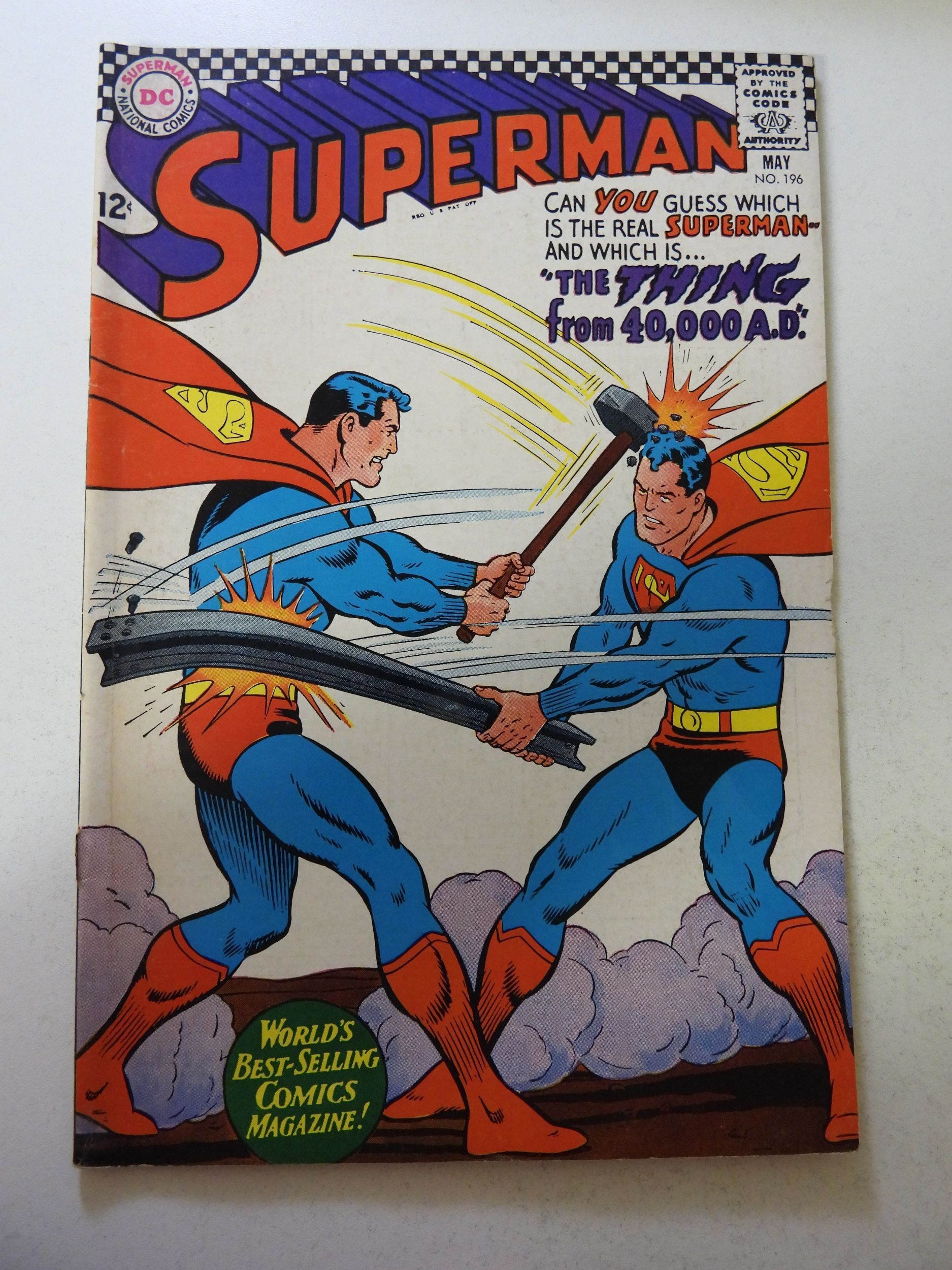 Superman #196 (1967) VG+ Condition cover detached at 1 staple
