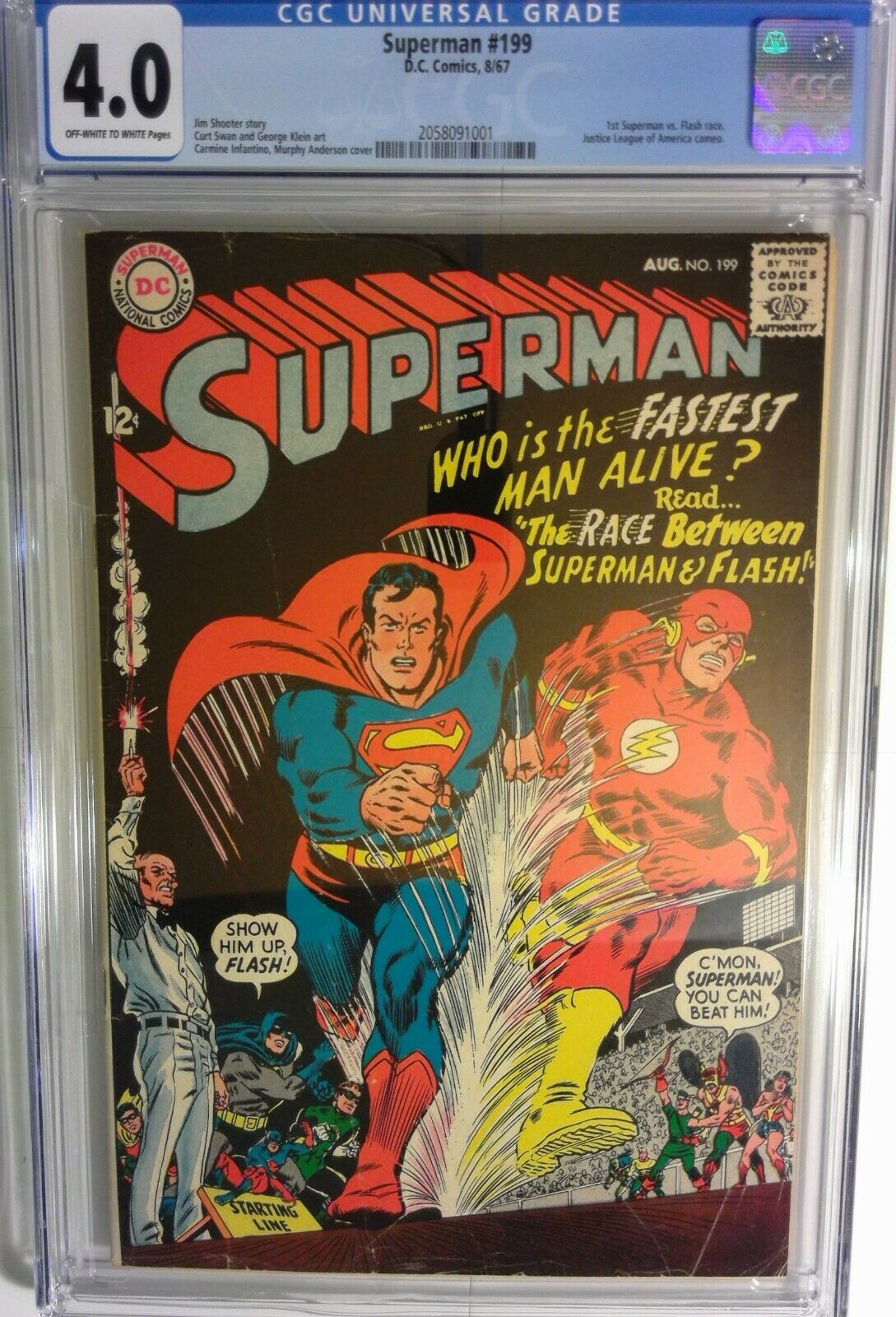 SUPERMAN #199 * 1st Superman Vs Flash Race * 1967 DC Comic * CGC 4.0 White Pages