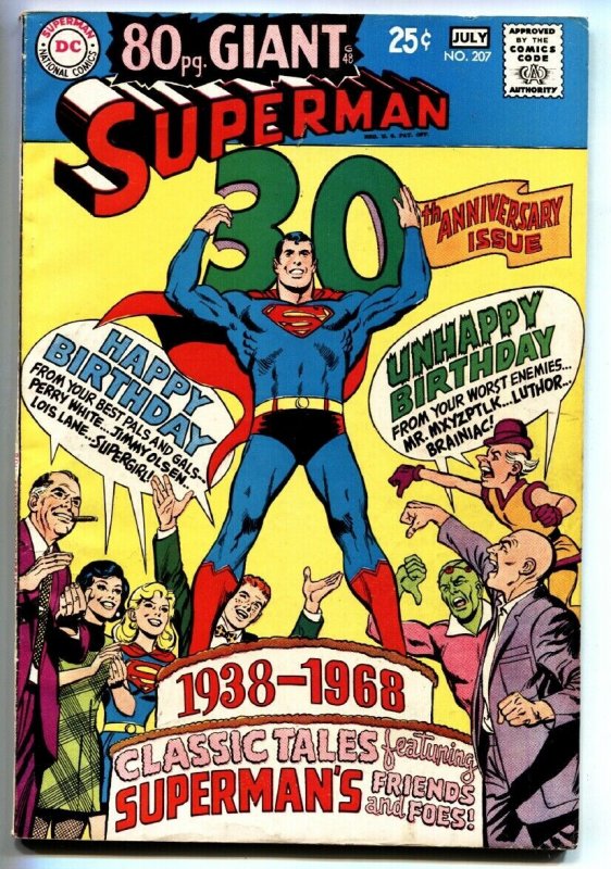 SUPERMAN #207 comic book-1968 DC 80 page giant 30th anniversary