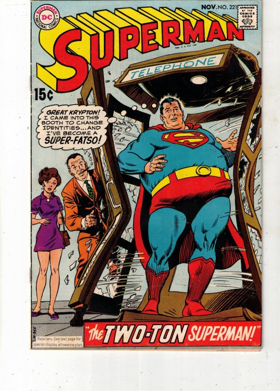 Superman #221 (1969) VF High-Grade 1st Fat Supes! Bondage Panel pg 1 Richmond!