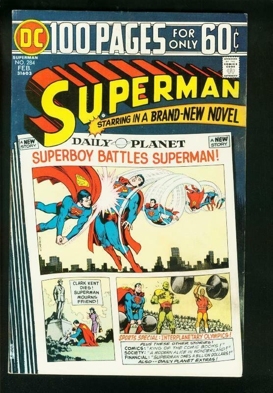 SUPERMAN #284 1975-DC 100 PAGES-GREAT ISSUE- FN-