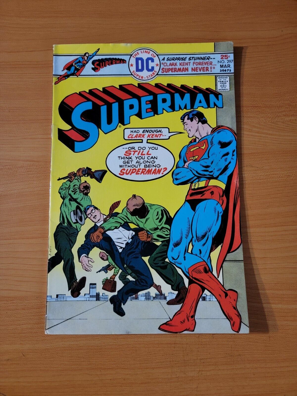 Item DescriptionSuperman #297 MARK JEWELER VARIANTPublisher: DC ComicsPublished: 1976Item Grade/ConditionGrade: VERY FINE For more information about this grade and other grades, please see our grading standards.~ WE TAKE HIGH DEFINITION PICTURES OF OUR COMICS ~ For more detail use the ZOOM Function and check them out yourself! ~Shipping Info:United States: Comic Book & Magazine Orders of all sizes, big and small ship for a flat Single Shipping ChargeInternational: We use Calculated Shipping! ~ This insures that you get the LOWEST POSSIBLE COST! ~ Please give us one business day to calculate large orders! The Calculator for Hip is pretty bad for international, contact us if you are looking to order multiple books so we can help you make it work on the back end! As a courtesy to our customers, we insure all orders over 50$ US ~ YOU DONT PAY EXTRA!Delivery TimeWe process and ship all orders within 1 business days. Once shipped, estimated U.S. transit time is 2-10 business days; international 14-21 business days.(Orders placed on Friday afternoon as well as weekends will be shipped the next business day as we do not ship on the weekends).PackingOmnomax Traders has mastered packing to ensure our orders of a "damage-free transport."Using the following methods, we have seen a nearly perfect 99% success rate for undamaged comics!Here is how our orders ship:All Orders :Bagged AND Boarded, ALWAYS NO EXCEPTIONS!Shipped in a Gemini Comic Mailer OR Tightly secured between 4x stiff pieces of corrugated cardboard (double Sandwiched)Sealed on all 4 sides with strong packing tape (Items doesn't even wiggle).:*Now this method is nearly perfect! however we have seen damage happen to items ( only once or twice a year ) ~ this is often due to bad handling by the postal service. Always remember to contact us if this happens! we are committed to quality service!*Offers History