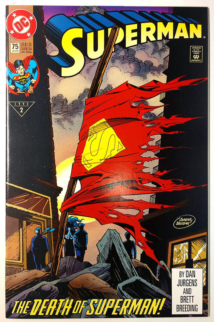Superman #75 (9.4, 1993) Death of Superman & Doomsday. Our grading standards are based on the Overstreet Grading Guide with additional experience gained from our 20+ years in the comic industry. We are not professio ... Read More