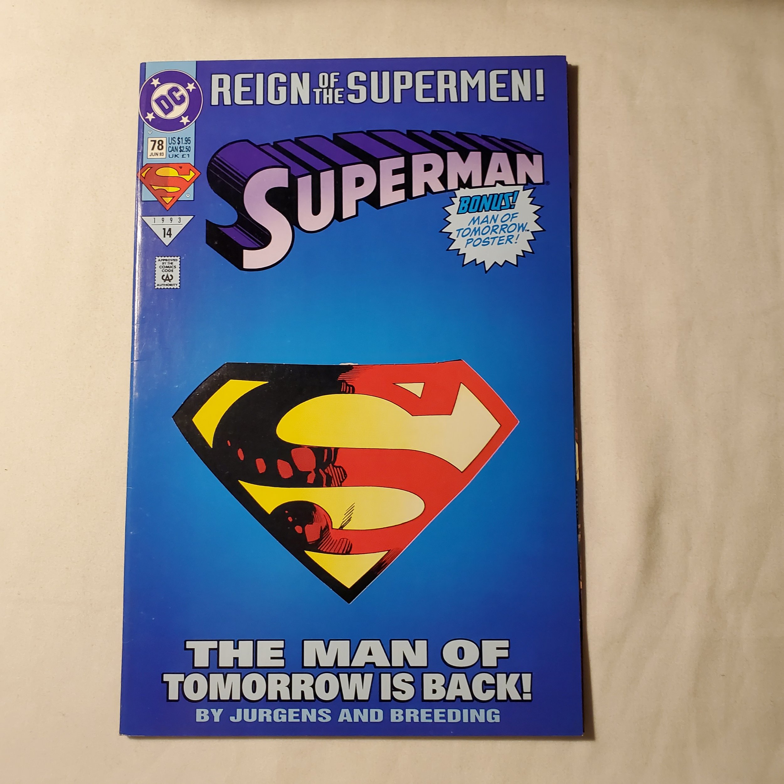 Superman 78 Very Fine/Near Mint Story by Dan Jurgens