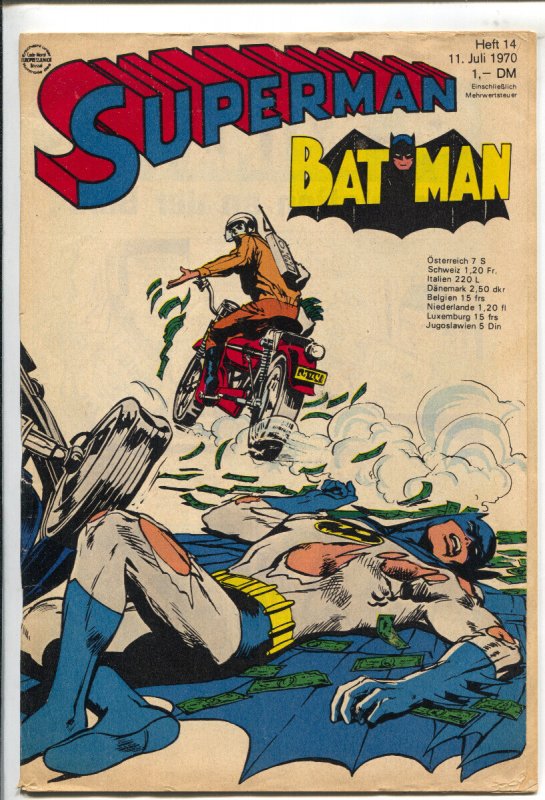 Superman Batman #14 1970-Batman & motorcycle cover-German language-VG