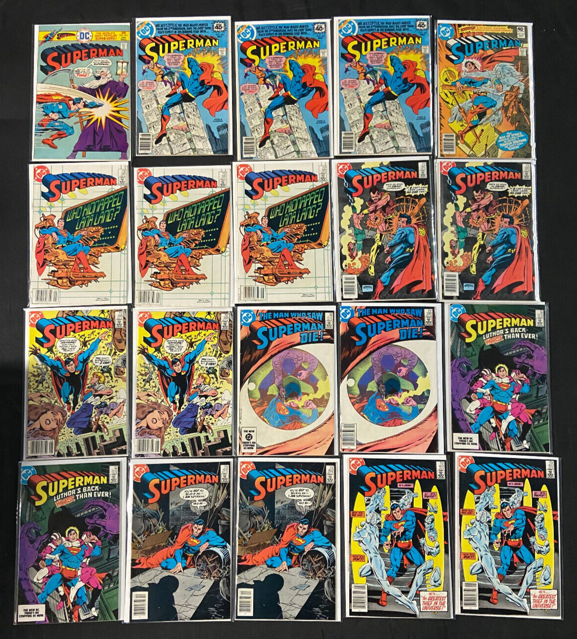 Condition: SUPERMAN BRONZE AGE 51 COMIC LOT INC LAST ISSUE ALAN MOORE MOST VF (DUPES). #295, 335 (3x), 347, ... Read more about the seller notes SUPERMAN BRONZE AGE 51 COMIC LOT INC LAST ISSUE ALAN MOORE MOST VF (DU ... Read More