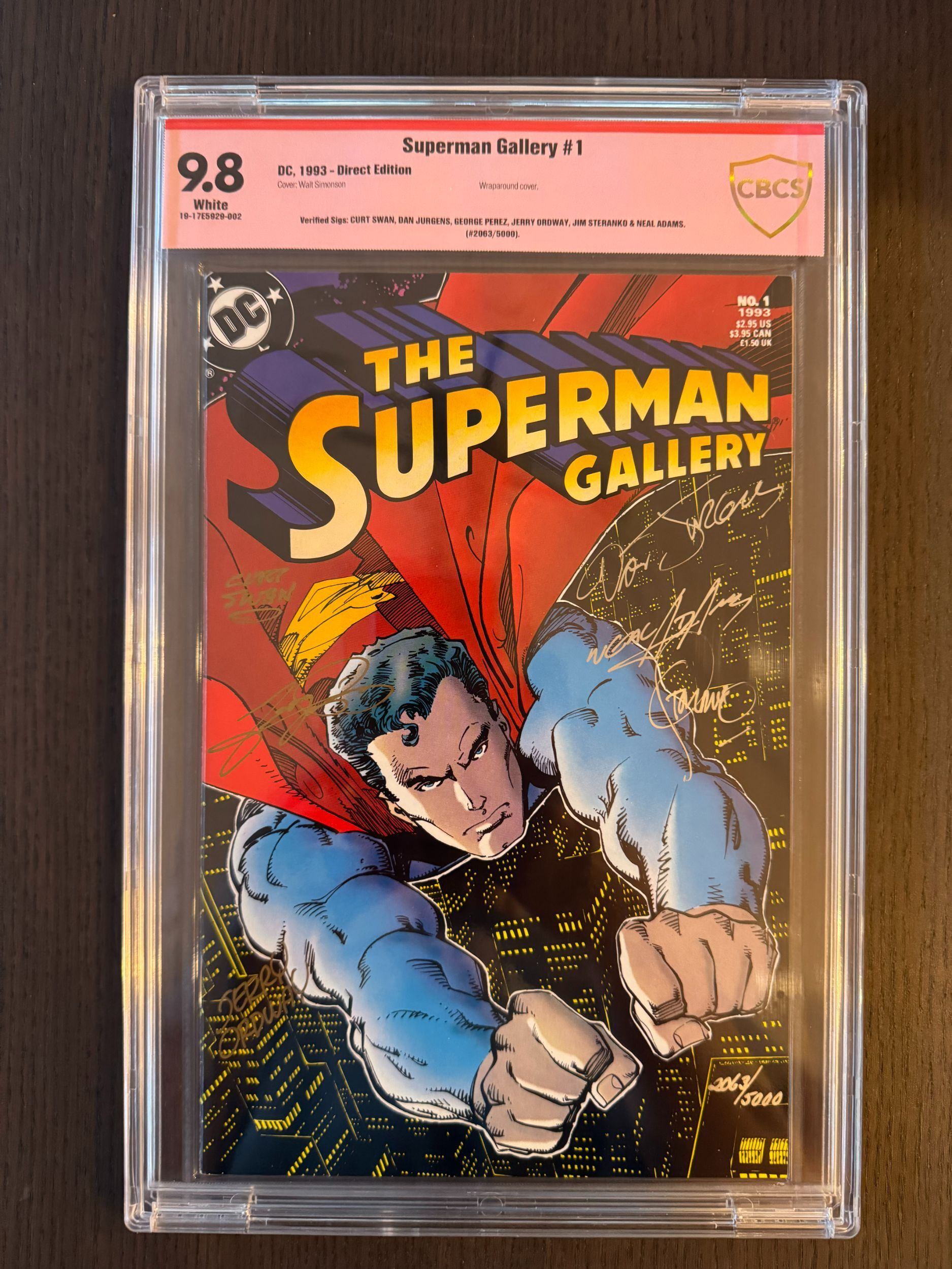 Superman Gallery 1 CBCS 9.8 Signed Swan, Jurgens, Perez, Ordway, Steranko,AdamsThe pictures above represent the exact item you are going to receive. They are NOT stock pictures. There are no missing pages, rips or cutouts.I am not a professional grader, so please use the pictures above to determine the grade for yourself. I have tried to grade as accurately as possible.