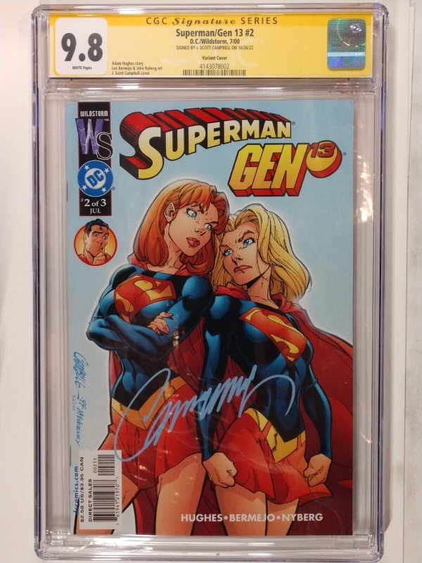 Superman/gen 13 #2 variant signed by scott campbell. The book is in very great shape and is graded at 9.8 by cgc. Please ask for more pictures if you need to see a closer look. I will be more than happy to send more to you. I want to make sure you are happy with the book before you buy it.