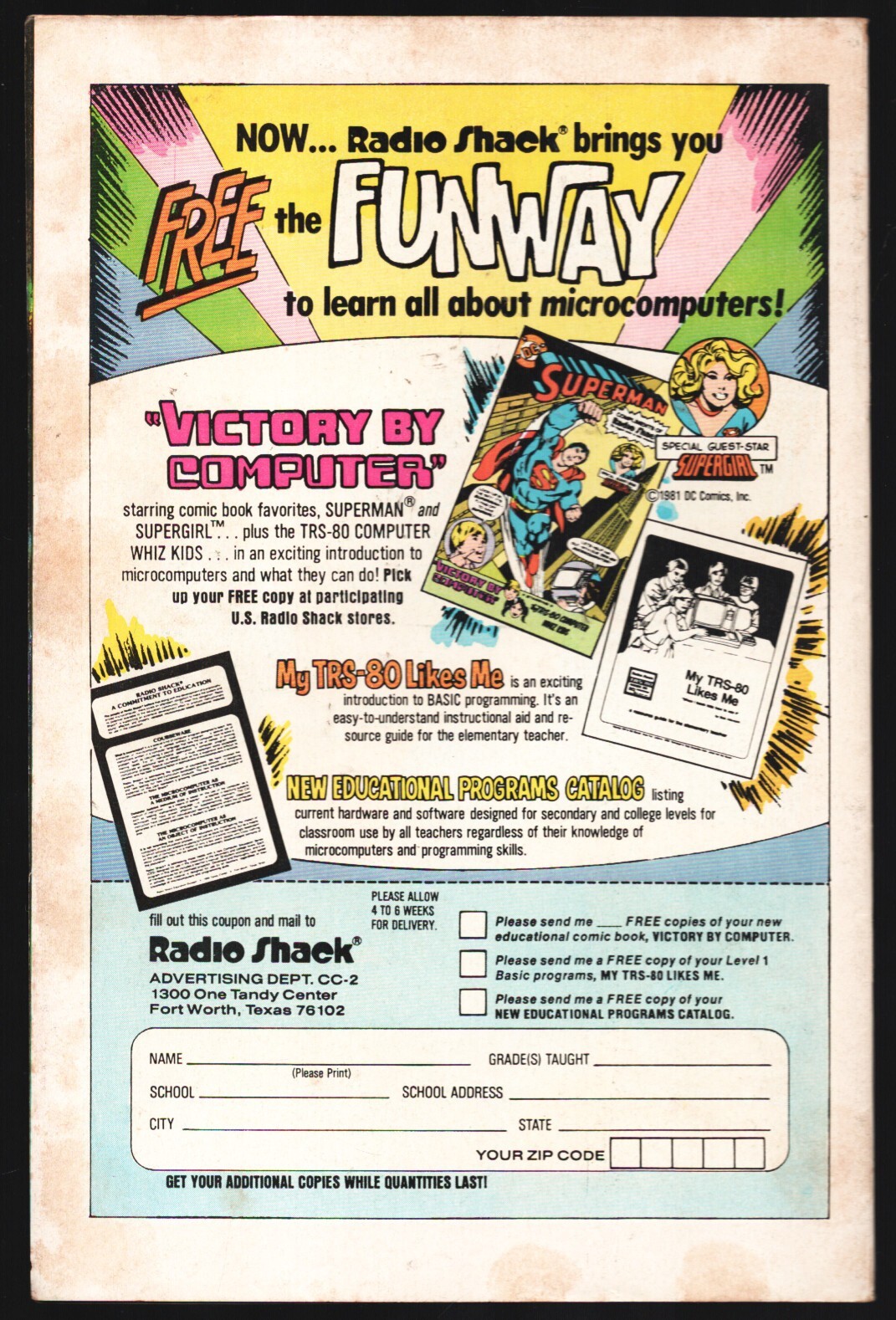 Superman-Radio Shack 1981-Supergirl appears-Victory By Computer -Supergirl appears -Victory By Computer Title: Superman-Radio Shack Issue: N/A Grade: VF SKU: LI-130-160