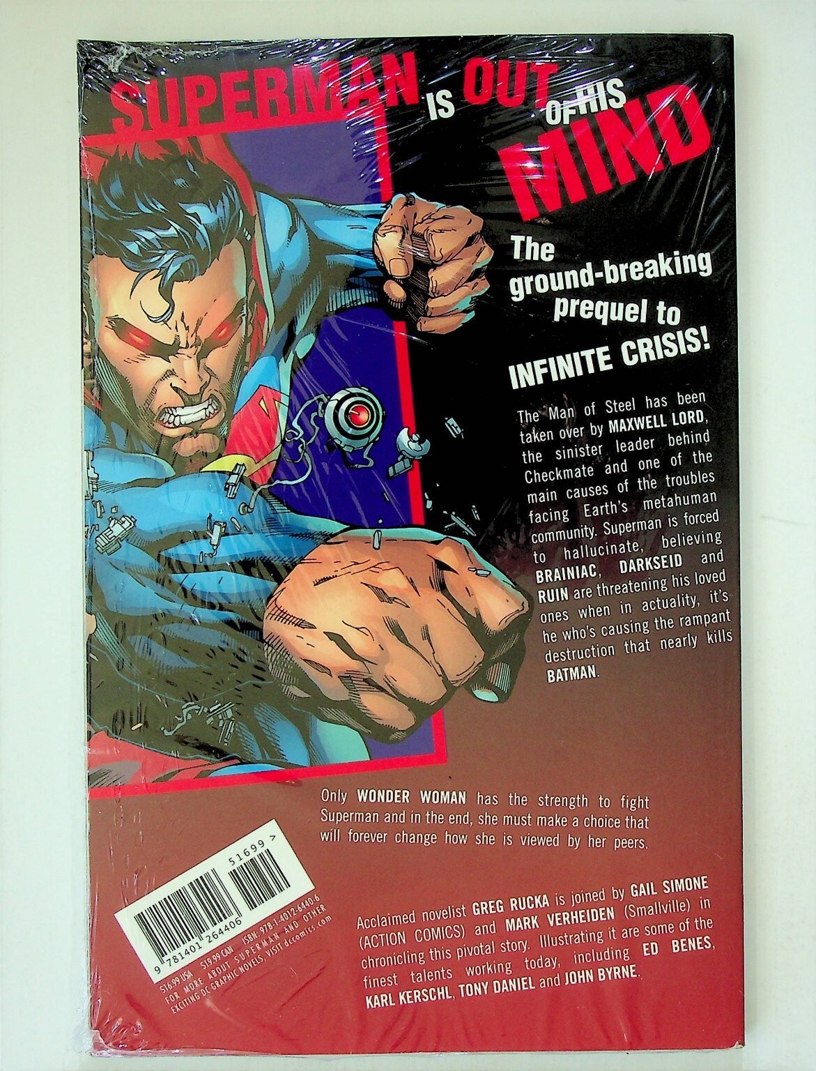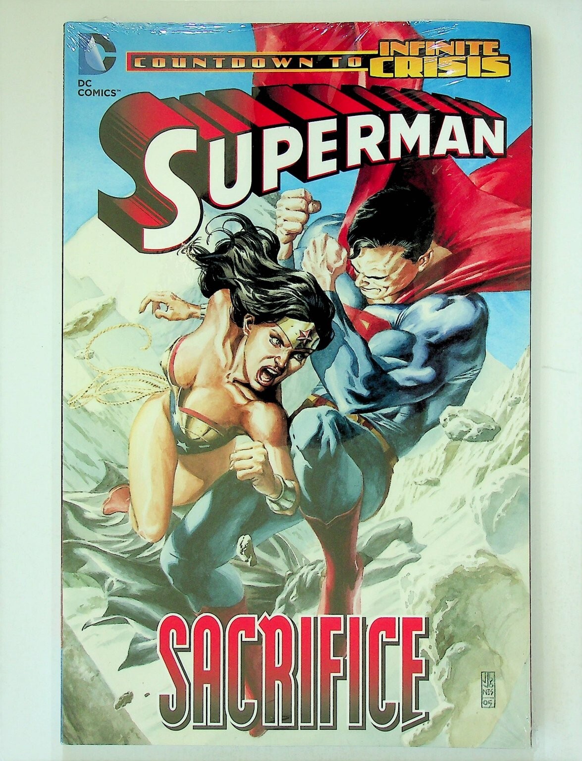 This is a Trade Paperback (TPB) titled "Superman: Sacrifice" published by DC Comics. This compelling graphic novel serves as the ground-breaking prequel to the epic "Infinite Crisis" storyline, detailing how Superman is affected by Maxwell Lord and his subsequent battle with Wonder Woman. It's a key story for both Superman and Wonder Woman, featuring a pivotal moment in DC Universe history.This listing includes one (1) Trade Paperback graphic novel, still sealed in its original polybag/shrinkwrap, as shown in the images. The book features the work of acclaimed writers Greg Rucka, Gail Simone, and Mark Verheiden, with illustrations by talented artists Ed Benes, Tony Daniel, John Byrne, and Karl Kerschl. The impactful cover art is dated '05.Verified Specifications:Publisher: DC ComicsSeries Title: SupermanStory Title: SacrificeItem Type: Trade Paperback (TPB)Era: Modern AgeFormat: Graphic NovelKey Features: Prequel to Infinite Crisis, Wonder Woman vs. Superman, Sealed in polybagIncluded Components: 1x Trade Paperback BookBarcode/UPC: 9781401204400Cover Price: $19.99Publication Year: 2005Original Packaging: In polybagSeller Information