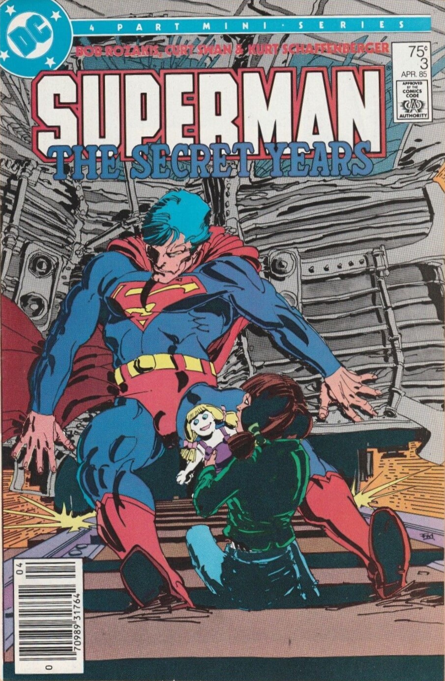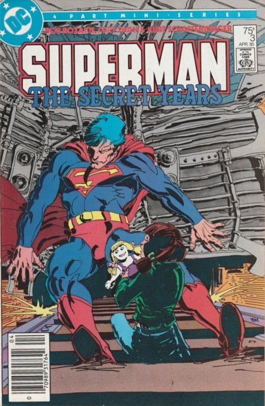 Item: Superman: The Secret Years #3 (Newsstand) | Publisher: DC | Cover Date: April 1985 | Writer: Bob Rozakis | Artist: Curt Swan | Cover Artist: Frank Miller | Appearances: Superman (Clark Kent), Lori Lemaris, Billy Cramer | Storylines: Terminus | Notes: Death of Billy Cramer; newsstand edition | With Economy shipping, each additional comic ships for just 50 cents more to customers in the USA. This listing contains a stock photo and information from ComicBase™ and © Human Computing. The stock photo is for reference only. If you would like to see a photo of the actual item, please message us prior to purchasing.Seller Information
