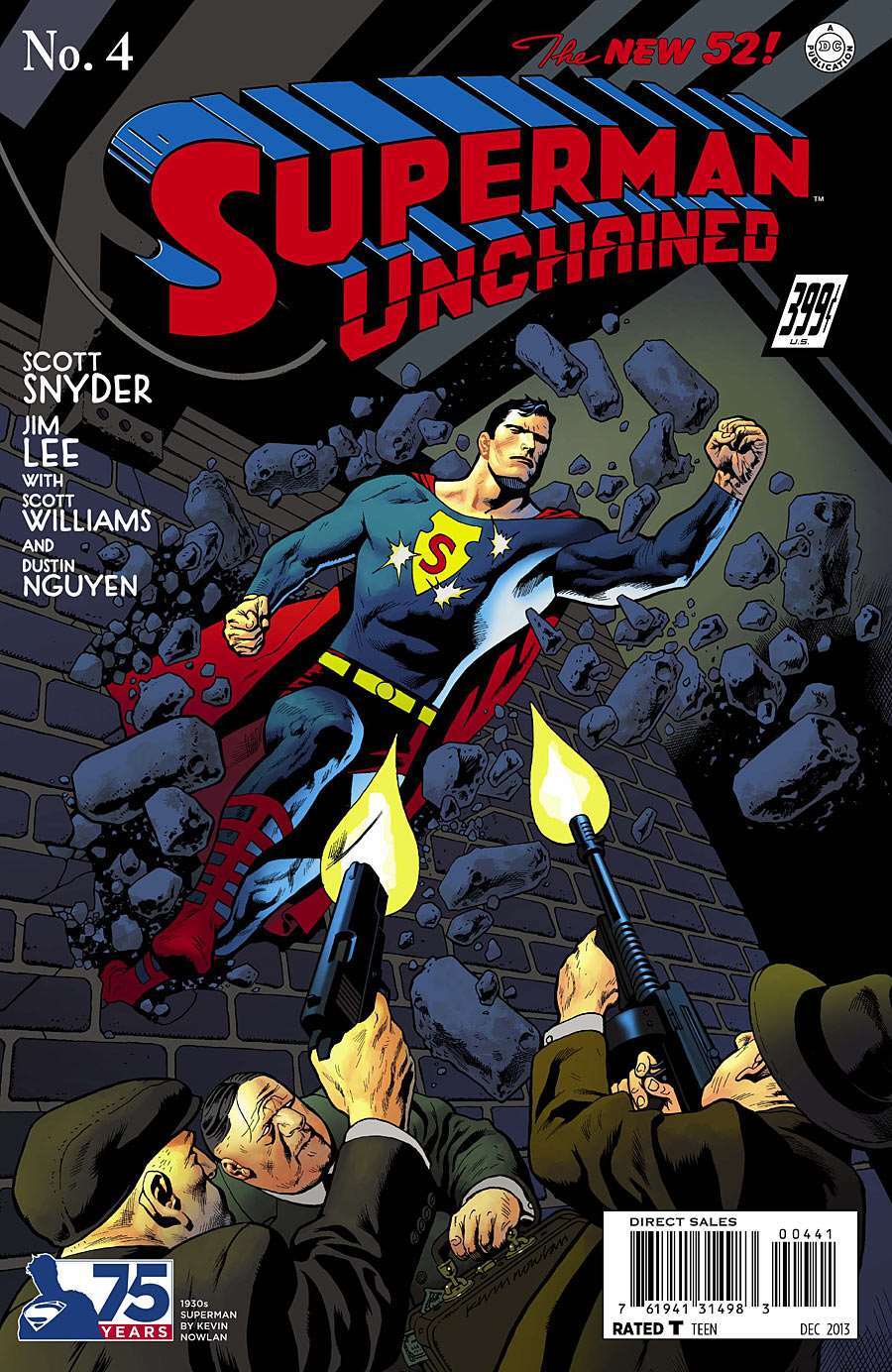Item: Superman Unchained #4C | Publisher: DC | Cover Date: December 2013 | Writer: Scott Snyder | Artist: Jim Lee, Dustin Nguyen | Cover Artist: Kevin Nowlan | Appearances: Superman (Clark Kent/Kal-El), Lex Luthor, Jimmy Olsen, Lois Lane, Wraith (William Rudolph's Ace in the Hole) | Storylines: Bullets | Notes: 75th Anniversary 1930s Cover | With Economy shipping, each additional comic ships for just 50 cents more to customers in the USA. This listing contains a stock photo and information from ComicBase™ and © Human Computing. The stock photo is for reference only. If you would like to see a photo of the actual item, please message us prior to purchasing.Seller Information