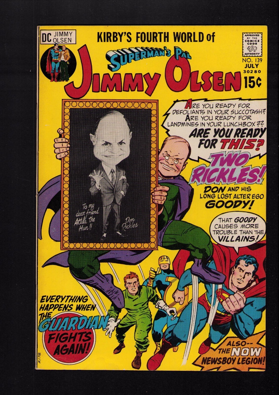Superman's Pal Jimmy Olsen #139 - JACK KIRBY ART KEY ISSUE! (6.0/6.5) 1971Size: 7" x 10"This item was uploaded by ___AG___.WE COMBINE SHIPPING!!! Either wait for us to send you an invoice after you commit to buy or, if it makes you pay right away, message us back and we'll refund the excess charge. Buy as many single comic books as you want for one low flat shipping rate in the United States! International will be charged exact according to size and weight. If you have any specific questions or requests, please ask us prior to ordering and we'll get back to you as soon as we can. If there are any problems with your order whatsoever, please message us before leaving feedback and we'll be happy to work with you to fix the situation! We ship worldwide, combine purchases, and charge exact shipping. The price may vary based on size, weight, and location. If you are automatically overcharged for shipping, message us and we'll be happy to revise the invoice or refund you the excess amount. If you have any questions regarding shipping, please message us. International Buyers - Please Note: Import duties, taxes, and charges are not included in the item price or shipping cost. These charges are the buyer's responsibility. Please check with your country's customs office to determine what these additional costs will be prior to bidding or buying. Payment can be made by PayPal and credit cards directly. 120,000+ items in total in my Hip store! Frequently Asked Questions: When are your operation hours?Our in office hours are Monday - Friday, 11 am - 8 pm. We are not open on weekends, so if you send us a request on Friday evening we won't get back to you until Monday afternoon. Please don't take it as us ignoring you! We will work on your request Monday and get back to you as soon as we can. Also, if you order from us on a Friday evening or Saturday morning we won't start processing your order until we open on Monday. That means on Monday it will be pulled and prepped for shipping, then picked up by the postman on Tuesday morning.When will you ship my item? The tracking hasn't moved.We realize you're eager to get your item, so if the tracking hasn't moved in a few days please don't be concerned. We give the postman a lot of packages daily, sometimes as many as 100, so he does not scan each item for us upon pickup as he says it would be too time consuming for him to do so. If you get a tracking number from us, that almost always means your item was picked up by the postman the next business day. The USPS is also imperfect. There are times when the tracking won't even show movement until it's in your area's regional distribution center. This is normal in our experience. Is the item pictured the exact one for sale?Yes! We don't use stock images and go through great lengths to scan or photograph everything we list. The item pictured is exactly what you should receive UNLESS it is a fixed price listing with multiple items available. Can you issue a COA? We can, upon request. Please make sure you leave us a note while checking out and shoot us a message immediately after requesting one, just to be sure. How do you grade?Grading is very subjective, but we are professionals with decades of grading experience between us who try the best we can to accurately describe the condition of the items we list. Anthony is an Overstreet Comic Book Price Guide Advisor Please see the grading chart below for a breakdown of how we grade: NOTE: We don't grade any raw books higher than 9.2, as once you go higher than that grading gets really subjective. If you buy a NM book from us, it may very well be higher than 9.2 but we play it safe and grade conservatively. 9.2 NM Near Mint 9.0 VF/NM Very Fine/Near Mint 8.5 VF+ Very Fine+ 8.0 VF Very Fine 7.5 VF- Very Fine- 7.0 FN/VF Fine/Very Fine 6.5 FN+ Fine+ 6.0 FN Fine 5.5 FN- Fine- 5.0 VG/FN Very Good/Fine 4.5 VG+ Very Good+ 4.0 VG Very Good 3.5 VG- Very Good- 3.0 GD/VG Good/Very Good 2.5 GD+ Good+ 2.0 GD Good 1.8 GD- Good- 1.5 FR/GD Fair/Good 1.0 FR Fair 0.5 PR PoorHow do you ship comics? We ship in rigid cardboard mailers to protect your comic book from the worst the mail system has to offer. Price varies based on the number of books you purchase, but we try to keep costs as low as we can and charge exact shipping. If it looks unusually high to you please send us a message and we'll be happy to double check for you. Do you combine shipping? Yes, of like items. Such as: several comics can fit in one cardboard mailer, as can more than one record. Multiple art pages can easily be combined because they are light and thin. Where combined shipping differs is with size and weight. For instance, two statues require a much bigger box. Same goes for CGCs, as the package gets bigger and heavier as you go. Do you ship well? I've had some bad experiences... You needn't worry; we are professionals who value your business and want your item to arrive safely as much as you do. I have been collecting for over 30 years. I send out items the way I would like to receive them. The tracking says my item is "OUT FOR DELIVERY" in New Jersey. Why is that?If the tracking indicates that the item is "OUT FOR DELIVERY" in NJ don't worry, it's just what the tracking says when it's carried over from the postman to the sorting center. This is normal for our Post Office and will not impact you receiving your item in a timely matter.What is the difference between a RUN and a LOT?Good question. A RUN will be a collection of consecutive issues with no breaks in between them. If it says RUN of #s 1 - 50 you will receive 50 consecutive comics. A LOT will be within a certain range, so a 50pc LOT will not contain consecutive books.I changed my mind after successfully winning the auction or fixed price listing, will you cancel the transaction? Please only bid or hit BUY IT NOW if you are willing to follow through and pay for the item, we will not cancel the transaction. As a seller, Hip penalizes us every time we cancel 