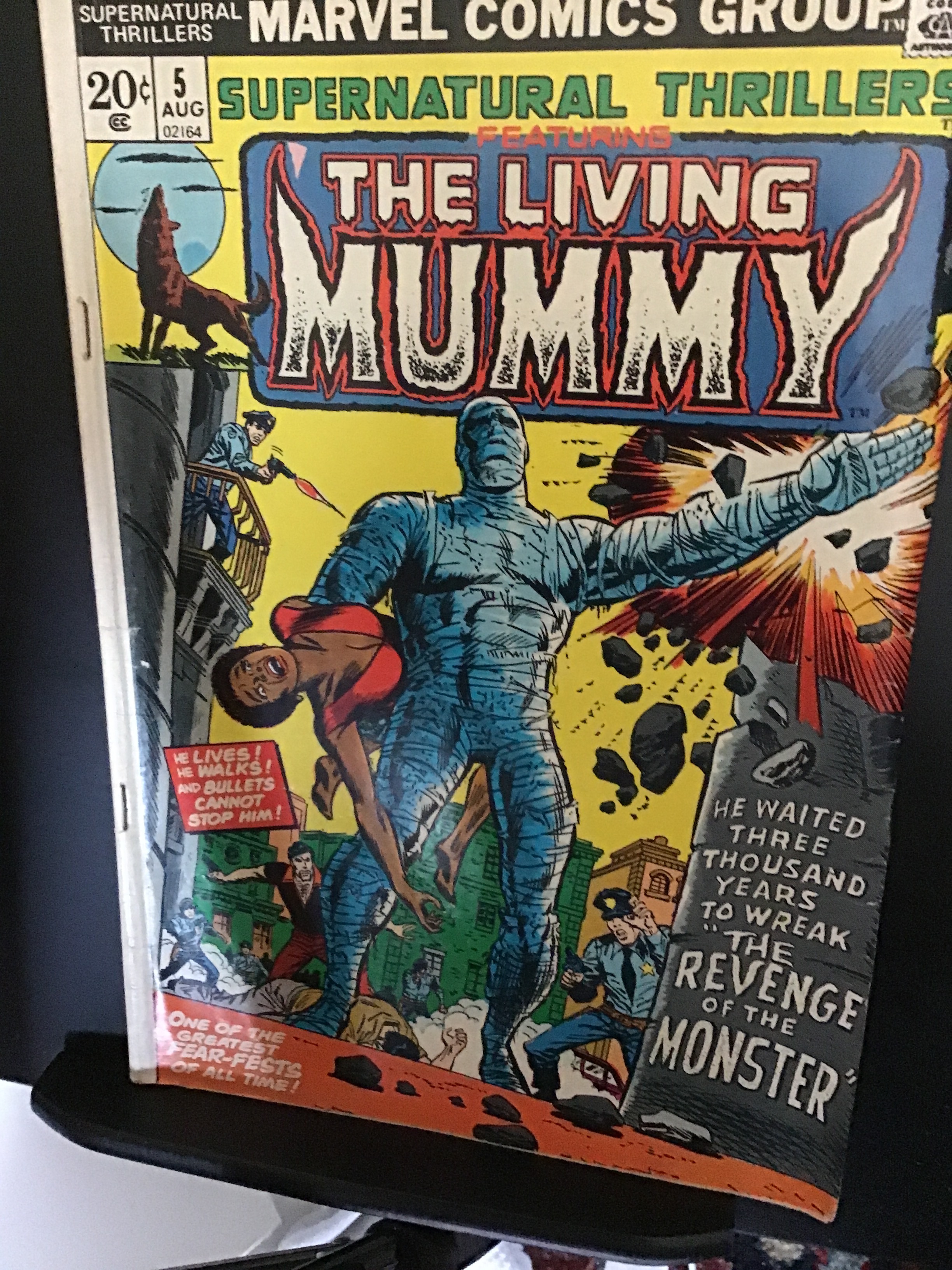 Supernatural Thrillers #5 (1973) This book has the bridge color and decent eye-appeal on this all time classic 1st living mummy cover! With cream/very slight heavy cream tint pages and white inside covers. With A sp ... Read More
