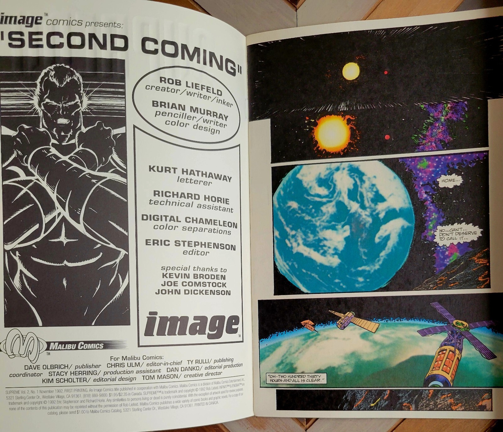 Supreme #1 w Trading Card (Image Comics 1993) Silver Foil / Embossed Cover 1st Issue Rob Liefeld VF/NM approx 9.0 Silver foil title. Regular Ed. Returning to Earth after 50 years away, Supreme doesn't get the warmes ... Read More