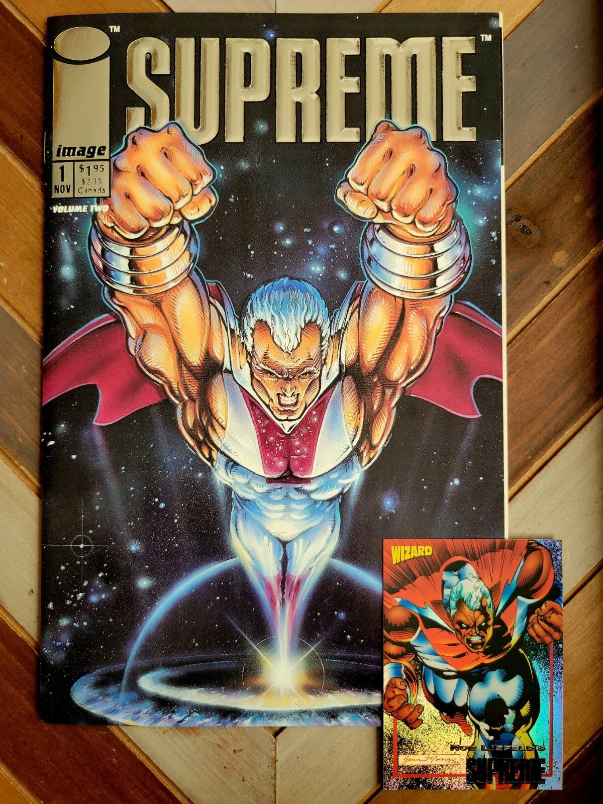 Supreme #1 w Trading Card (Image 1993) Silver Foil / 1st Issue Rob Liefeld VF/NM