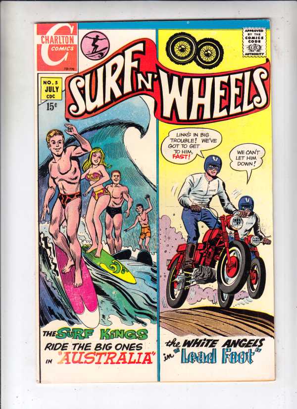 Surfn' Wheels #5 - Surfn' Wheels APPEARANCE - The Surf Kings and The White Angels CONTENT - Motor Cross Motorcycle racing and Surfing Australia! This book is part of the one-owner high-grade Wythville collection f ... Read More