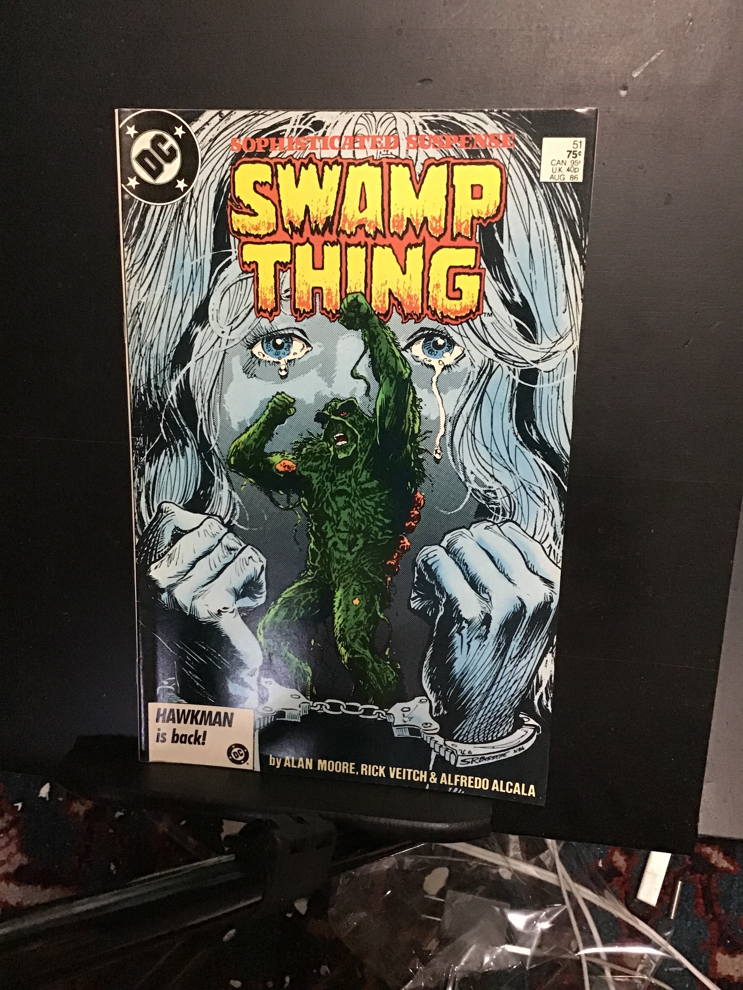 Swamp Thing #51 (1986) This book has deep rich color very nice eye-appeal on this all time classic Swamp Thing cover! With cream/very slight heavy cream tint pages and white inside covers. The book is well attached ... Read More
