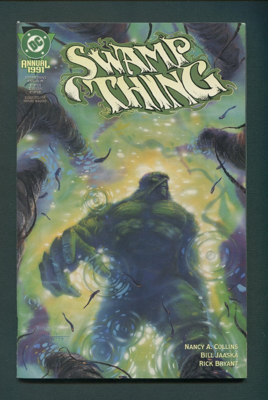 An exciting new creative team arrives to usher Swamp Thing into the '90s. Swamp Thing, Abby and Tefe return to the Louisiana bayou to reacquaint themselves with friends...and find that a bizarre creature composed of the bodies of four cruelly murdered people stalks Houma. Written by award-winning horror novelist Nancy A. Collins, with art by Bill Jaaska and Rick Bryant. Painted cover by John Higgins. 68 pages.