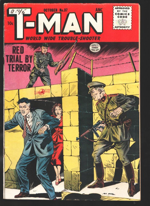T-Man #37 1956-Quality-Fight the Commies-"Red Trial By Fire"-Marking on cover...