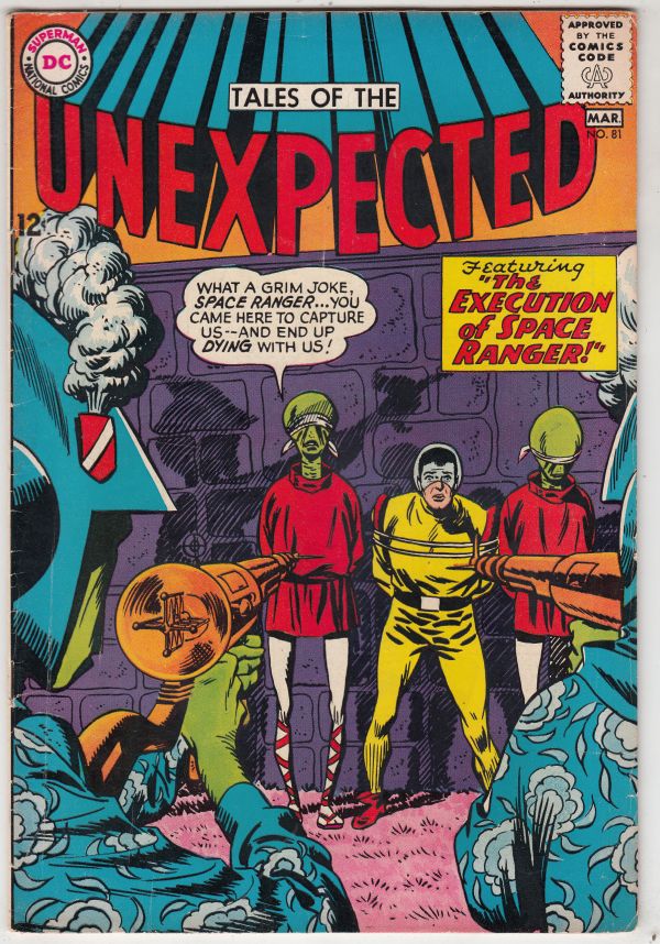 Tales of the Unexpected #81 - Featuring "The Execution Of Space Ranger!" APPEARANCE - Space Ranger! COVER - Firing Squad Wow! This book has nice eye-appeal with a teeny tape-seal at the outer-edge, a small chip an ... Read More