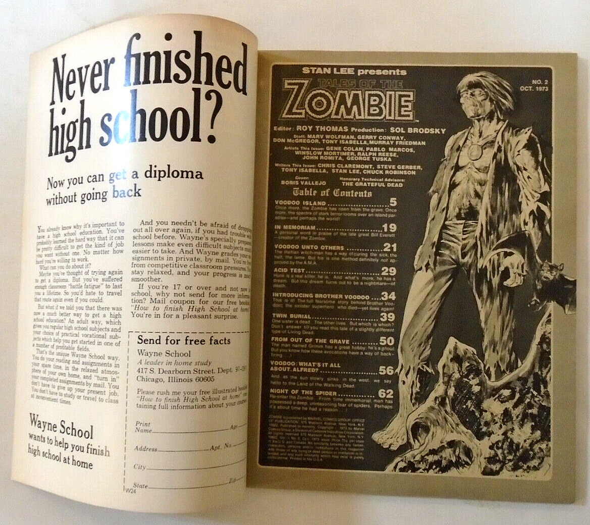 Condition: Very fine-near mint condition (9.0)Tales of the Zombie (1973 Marvel) #2Very fine-near mint condition (9.0), in Mylar with Full-BackWe encourage you to browse our store. If you buy multiple items, there's a good chance that you'll save a substantial amout on shipping by combining orders into one box.Friendly Frank's was started in 1978 with a $40 investment. We started Friendly Frank's Distribution in 1982, the regional distributors Co-Op Jam in 1983, the Comic Book Legal Defense Fund in 1986, and B-Bop Comics in Kansas City in 1999. A member of the 100 million sold club. Largest buyer and seller of old comics in Kansas and Missouri. Thank you!