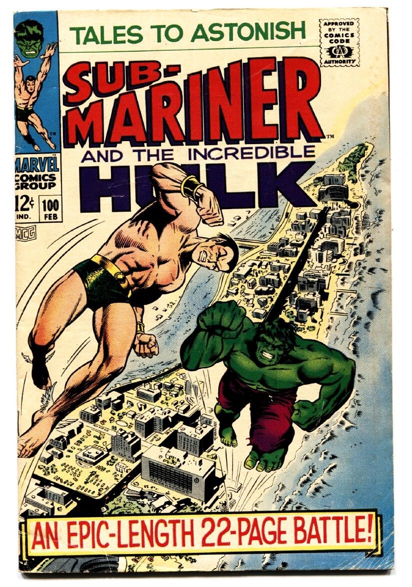 TALES TO ASTONISH #100 comic book-HULK-SUB-MARINER-CLASSIC COVER-MARVEL fn