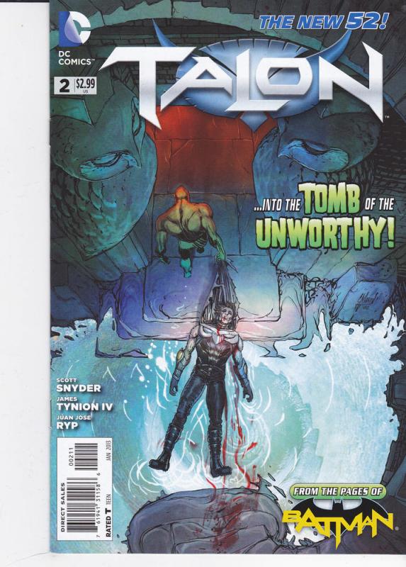 Talon #2 by DC Comics copyright 2013. I have graded the comic book, using the Overstreet Grading Guide, at FINE/VERY FINE with the following defects: Light stress marks along the spine. The corners are rounded. There is some yellowing through out the pages.Seller Information