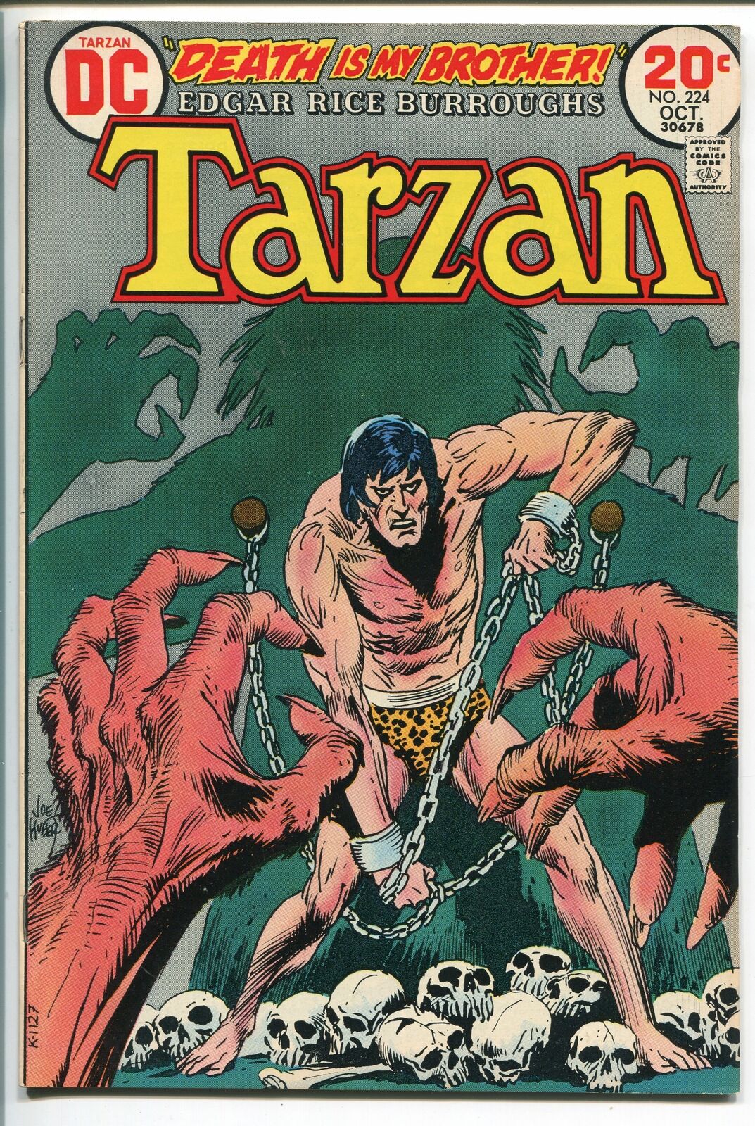 TARZAN #224 1973-DC-EDGAR RICE BURROUGHS-JOE KUBERT JUNGLE ART-SKULL-vf