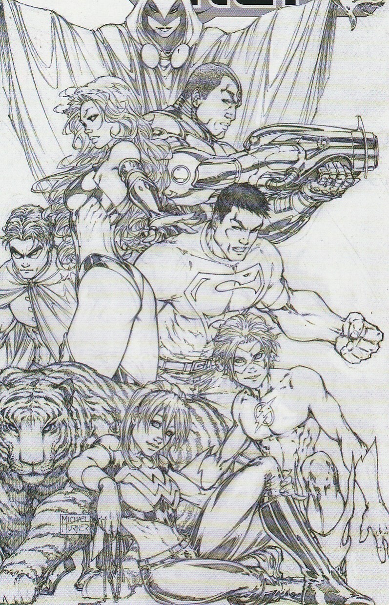 New Teen Titans members Starfire, Cyborg, and Beast Boy mentor former Young Justice members Robin, Superboy, Kid Flash, and Wonder Girl. Story by Flash/JSA writer Geoff Johns with art by Firearm artist Mike McKone . Cover art by Witchblade/Fathom artist Michael Turner