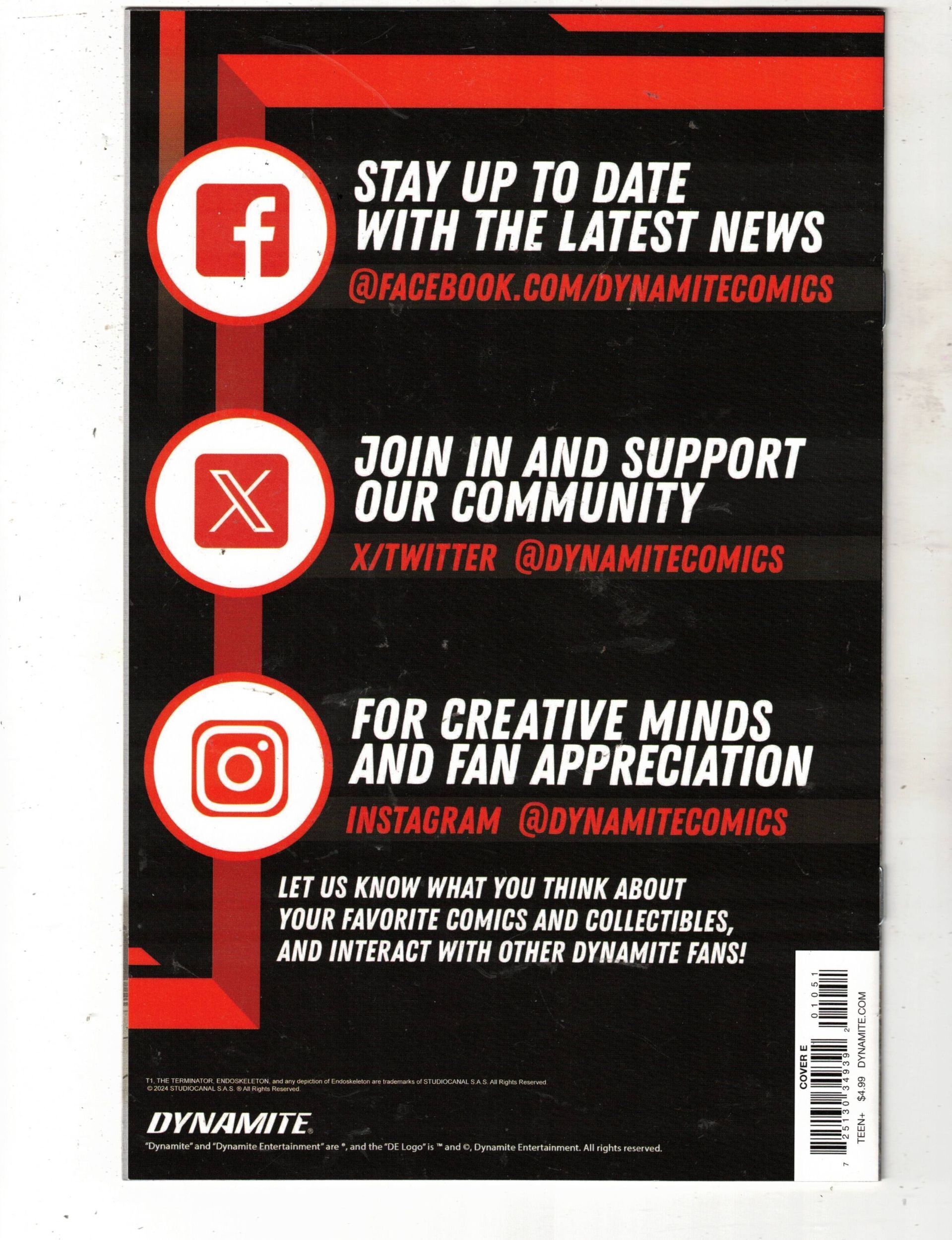 The Terminator Issue: #1E The Terminator Issue: #1AE Name: Untitled Publisher: Dynamite Entertainment Titles: The Terminator Released: Oct 2024 Last Valuation Update: 10/09/2024 Description: Dynamite Webstor ... Read More