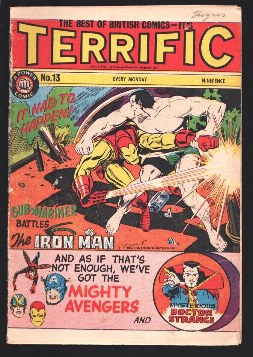 Terrific #13 1967-British edition features Avengers #12-Iron Man vs Sub-Marin...