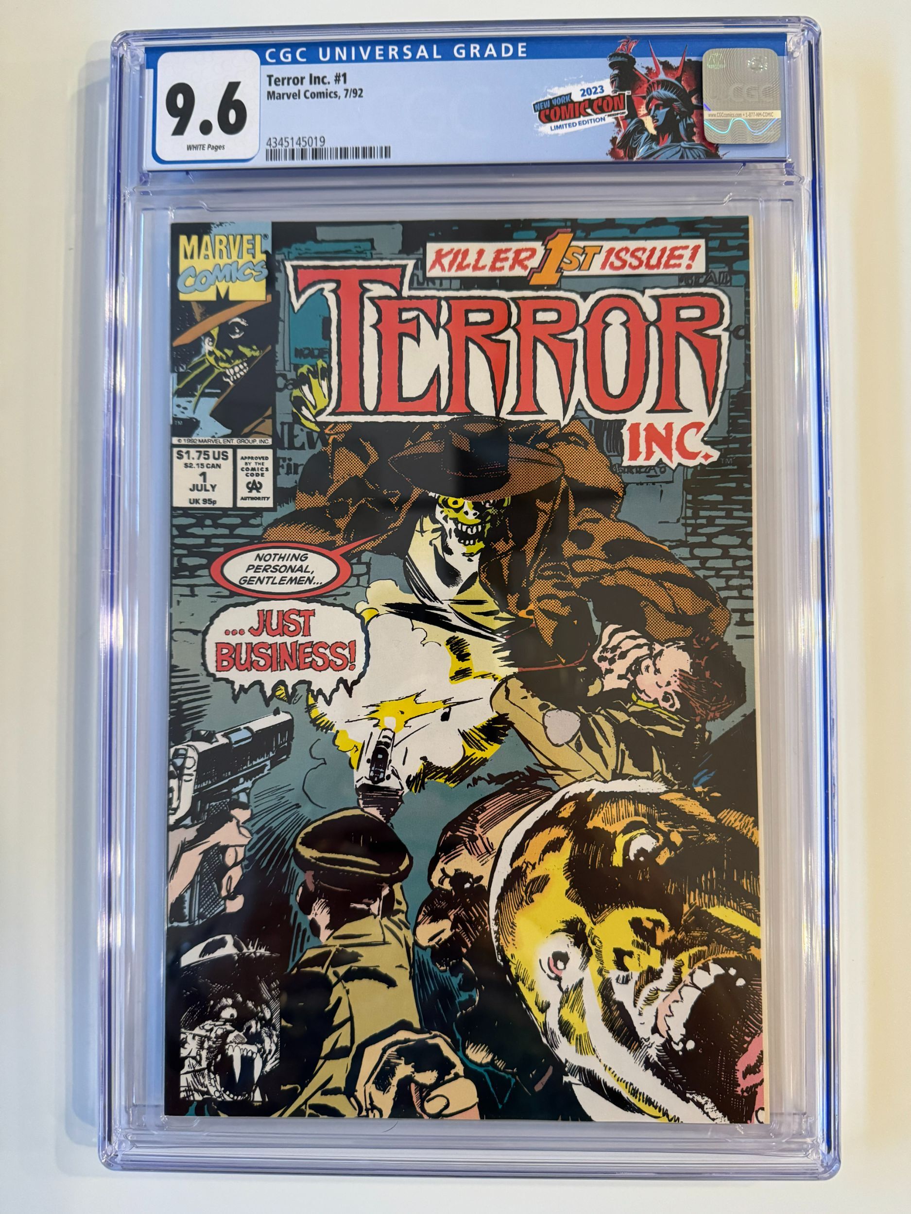 Terror Inc 1 CGC 9.6 Marvel (1992)The pictures above represent the exact item you are going to receive. They are NOT stock pictures. There are no missing pages, rips or cutouts.I am not a professional grader, so please use the pictures above to determine the grade for yourself. I have tried to grade as accurately as possible.