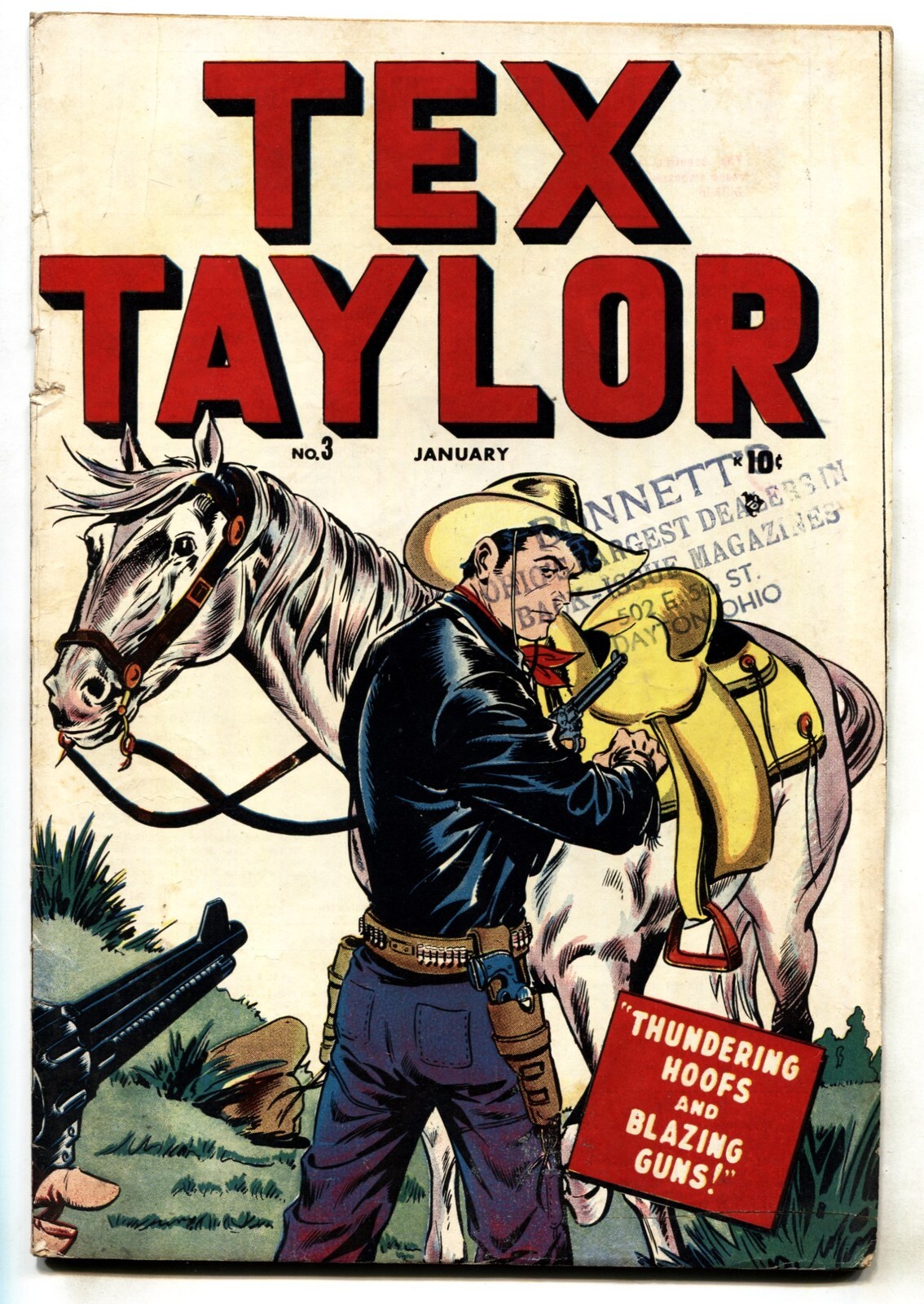 TEX TAYLOR #3 Golden-Age comic book MARVEL WESTERN 1948 VG Cool western golden-age comic book. Store stamp on cover. TITLE: Tex Taylor ISSUE: 3 GRADE: VG SKU: VE-10-250Seller Information