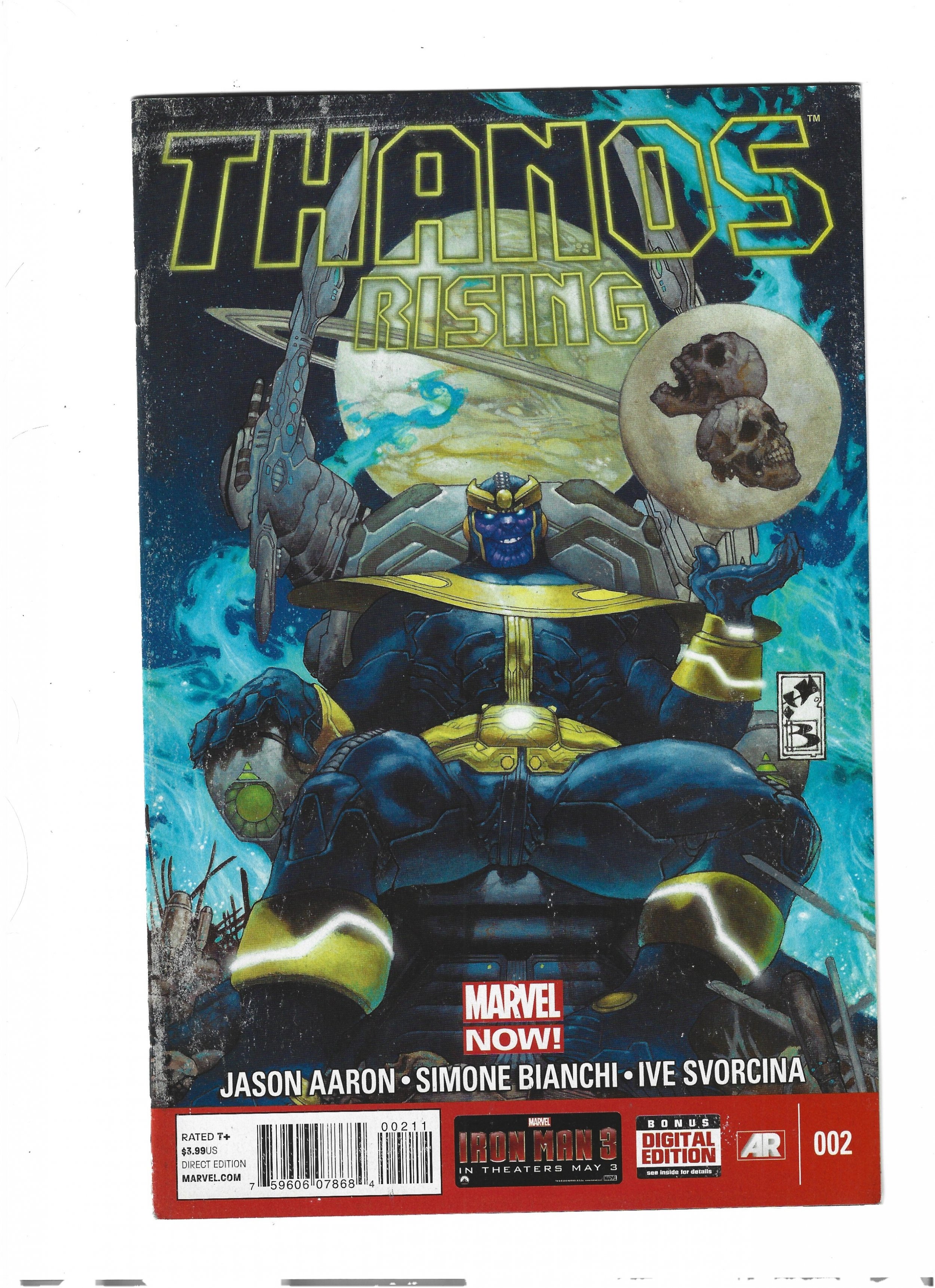 Thanos Rising #2 (2013) I have graded the comic book at FINE+ with the following defects: Light stress marks along the spine. The corners are rounded. There is yellowing of the pages.Seller Information