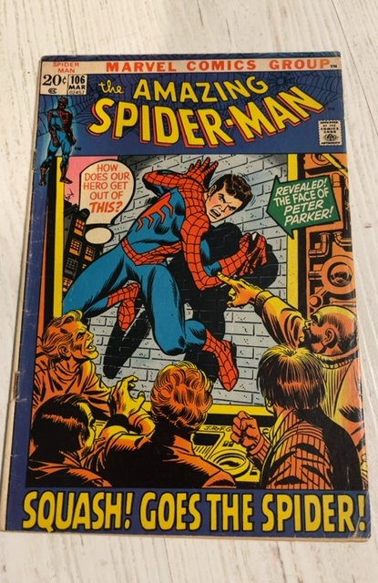 The Amazing Spider-Man #106 (1972)squash goes the spider foxing/ brownign