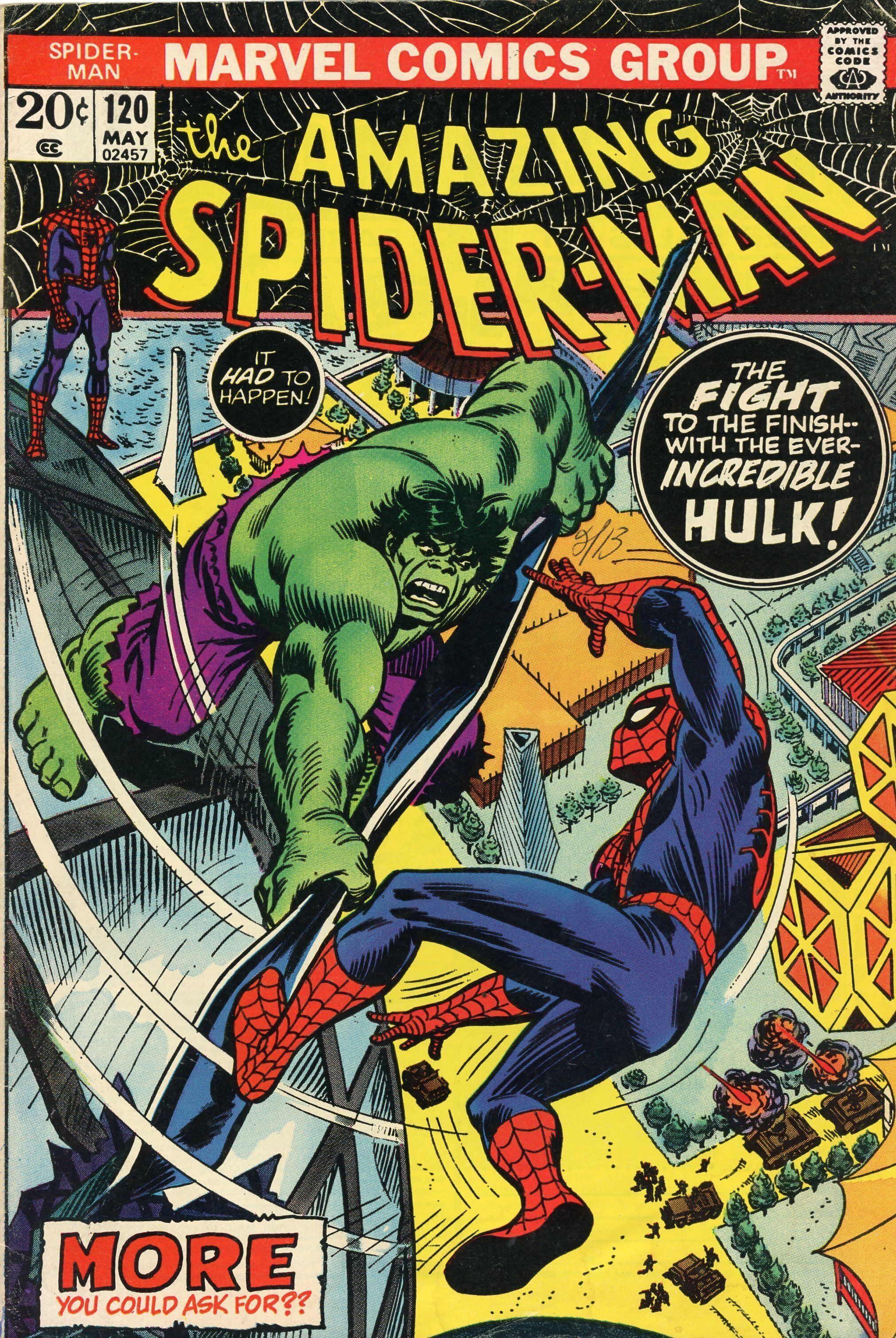 The Amazing Spider-Man #120 (1973) vs Incredible Hulk Comic Book VG/F 5.0. The comic book has a Grade of VG/F 5.0. There is overspray & very small holes to a few pages to comic. Also some edge and corner wear. I'm j ... Read More