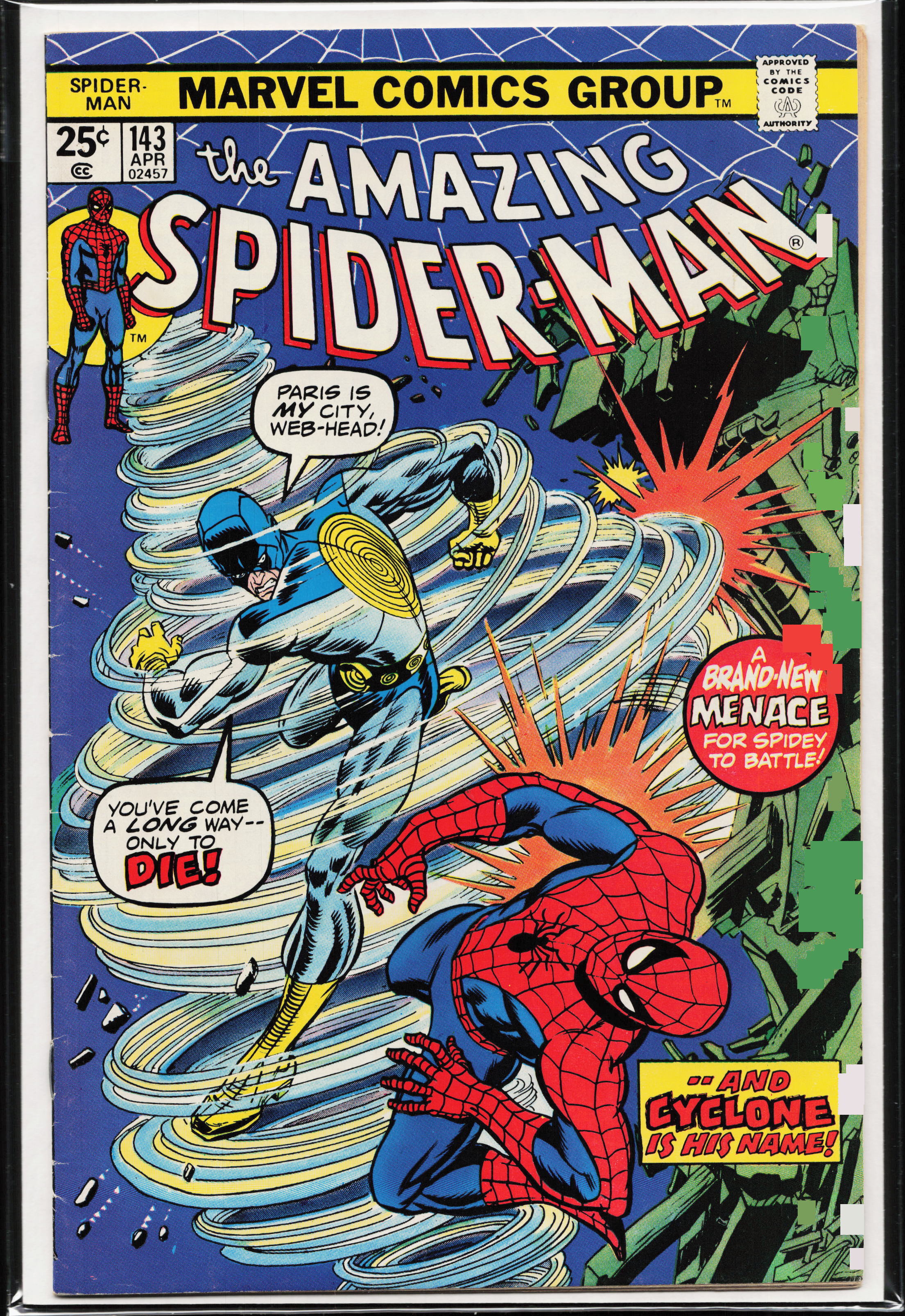 The Amazing Spider-Man #143 (1975) First Appearance: Cyclone (Andre Gerard)Seller Information