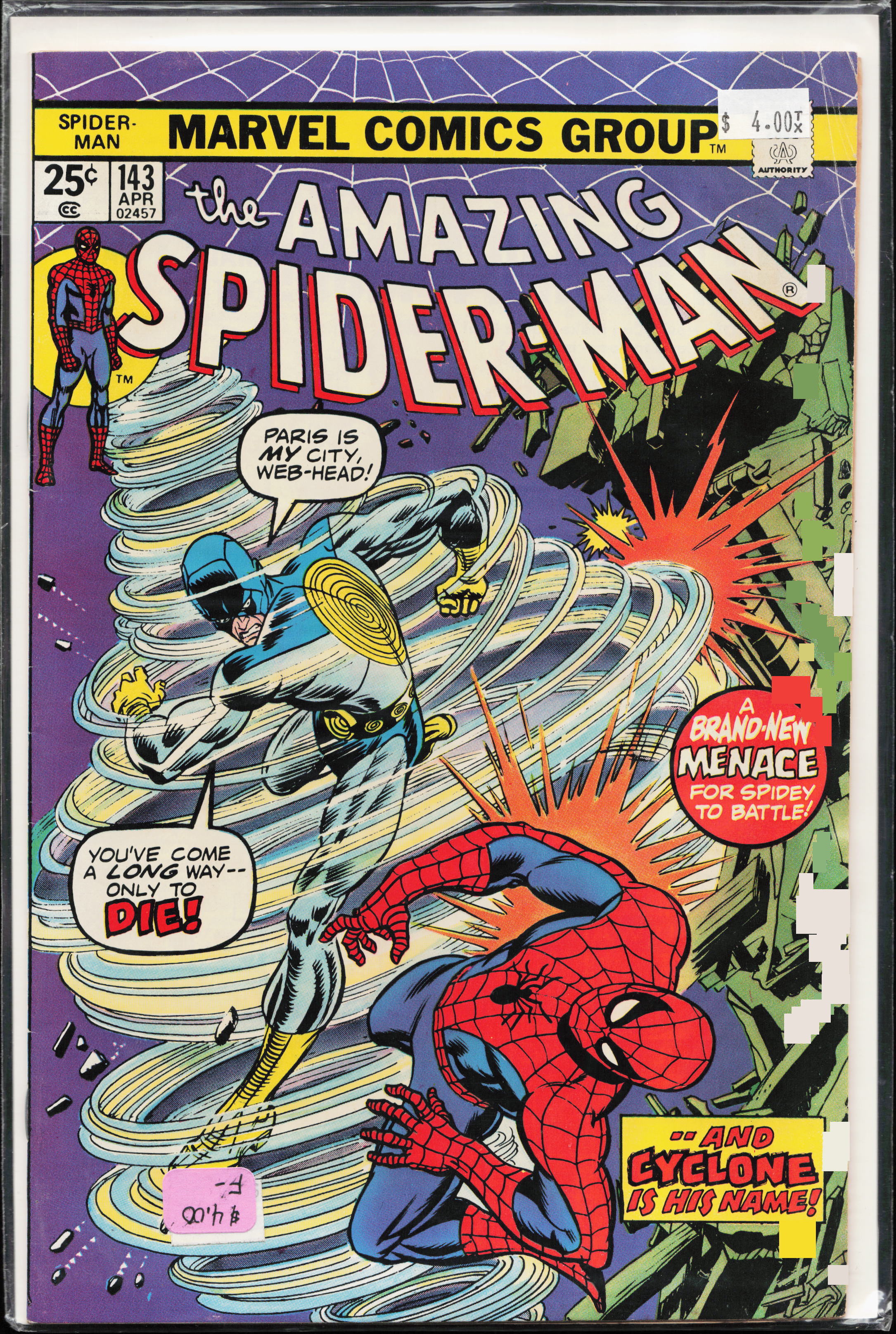 The Amazing Spider-Man #143 (1975) First Appearance: Cyclone (Andre Gerard)Seller Information