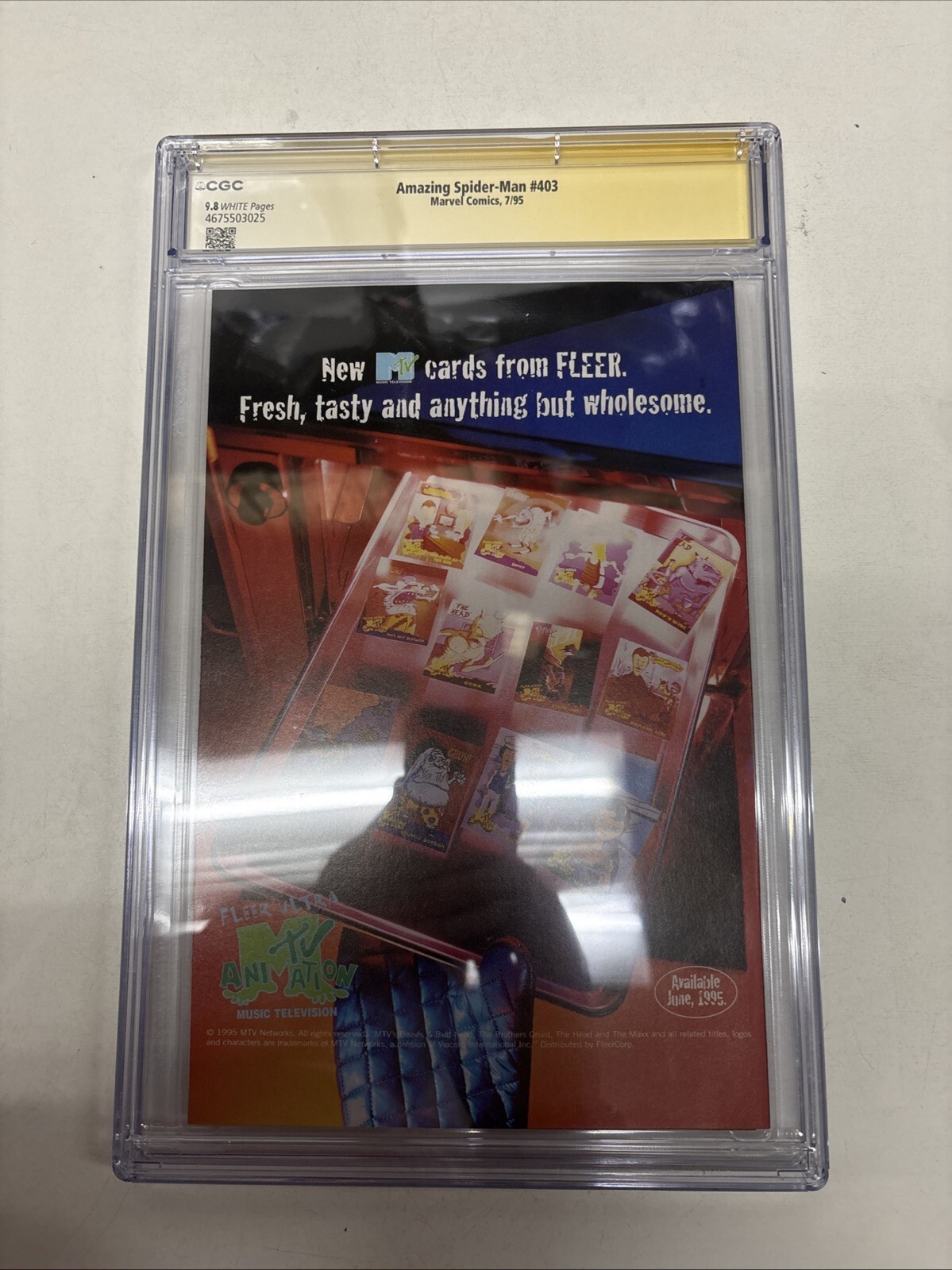 Grade: 9.8 NM/MTDelve into the thrilling world of Marvel with "The Amazing Spider-Man (1995) #403," a must-have for any avid collector or fan of the web-slinging hero. This issue, graded at a pristine 9.8 NM/MT by the CGC, boasts a crisp, clean appearance, promising a high-caliber addition to your collection. It's a noteworthy piece due to its rarity and the fact that it's signed by the cover artist himself, Mark Bagley. Adding to its collectibility, this comic is a 1995 US publication that features the iconic Spider-Man, a testament to the character's enduring legacy. It's a remarkable find from the "The Amazing Spider-Man" series, reflecting the excellence of the era and the skill of the Marvel publishers. Secure this gem and own a piece of comic book history.