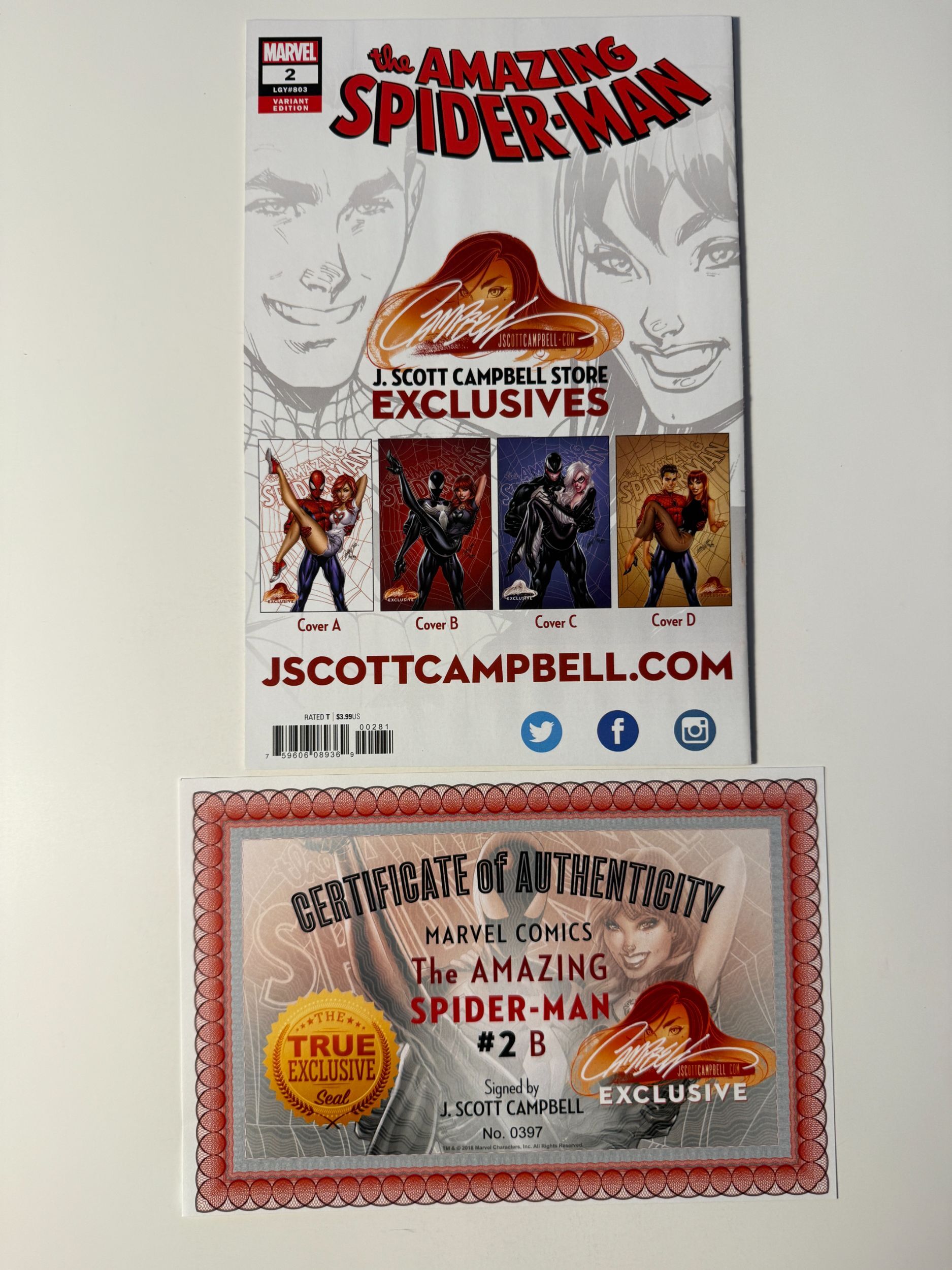 The Amazing Spider-Man #2 Campbell Cover B (2018) Signed by Campbell with COA!Seller Information