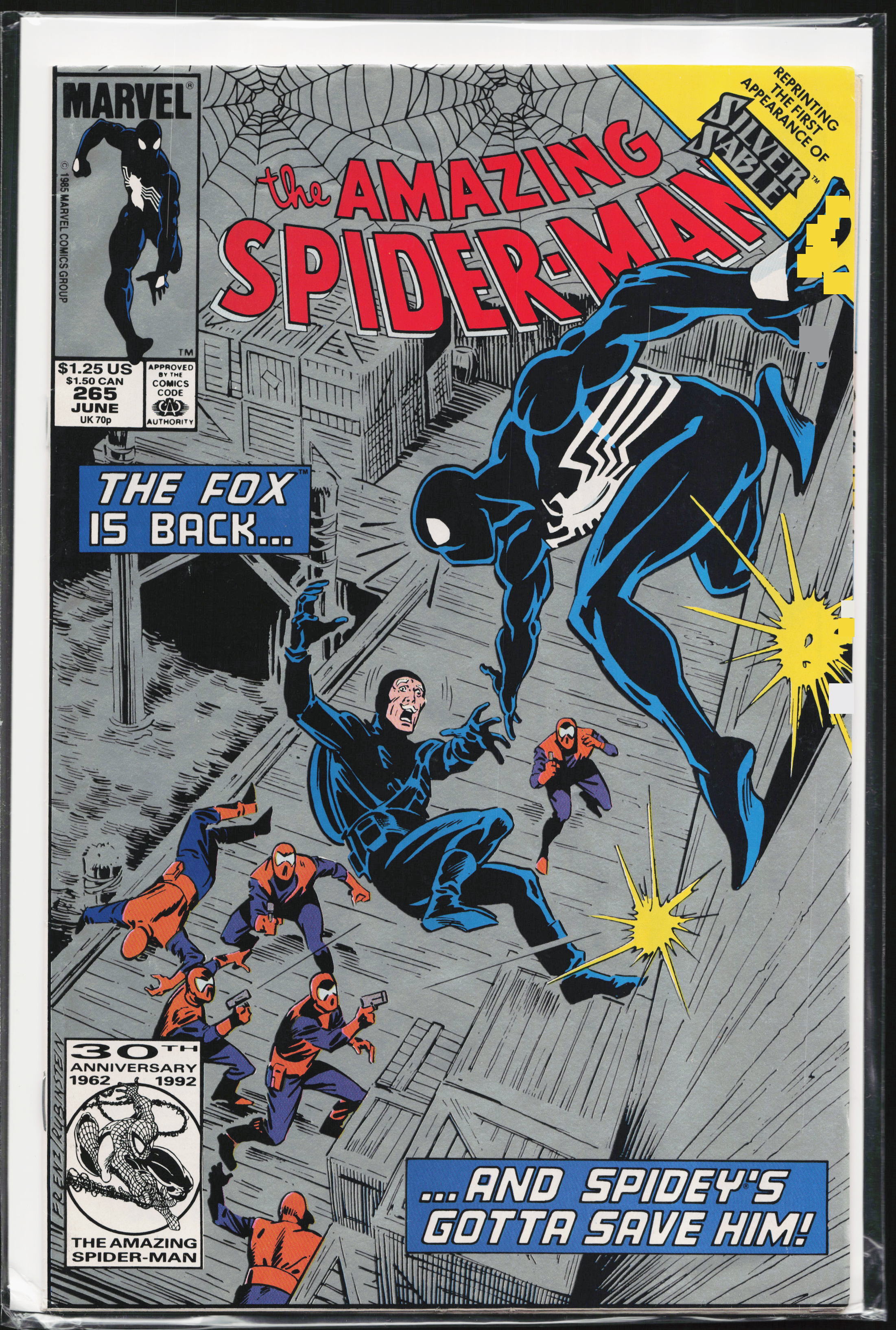 The Amazing Spider-Man #265 Second Print Cover (1985) First Appearance: Silver Sable (Silver Sablinova), Black Fox (Raul Chalmers)